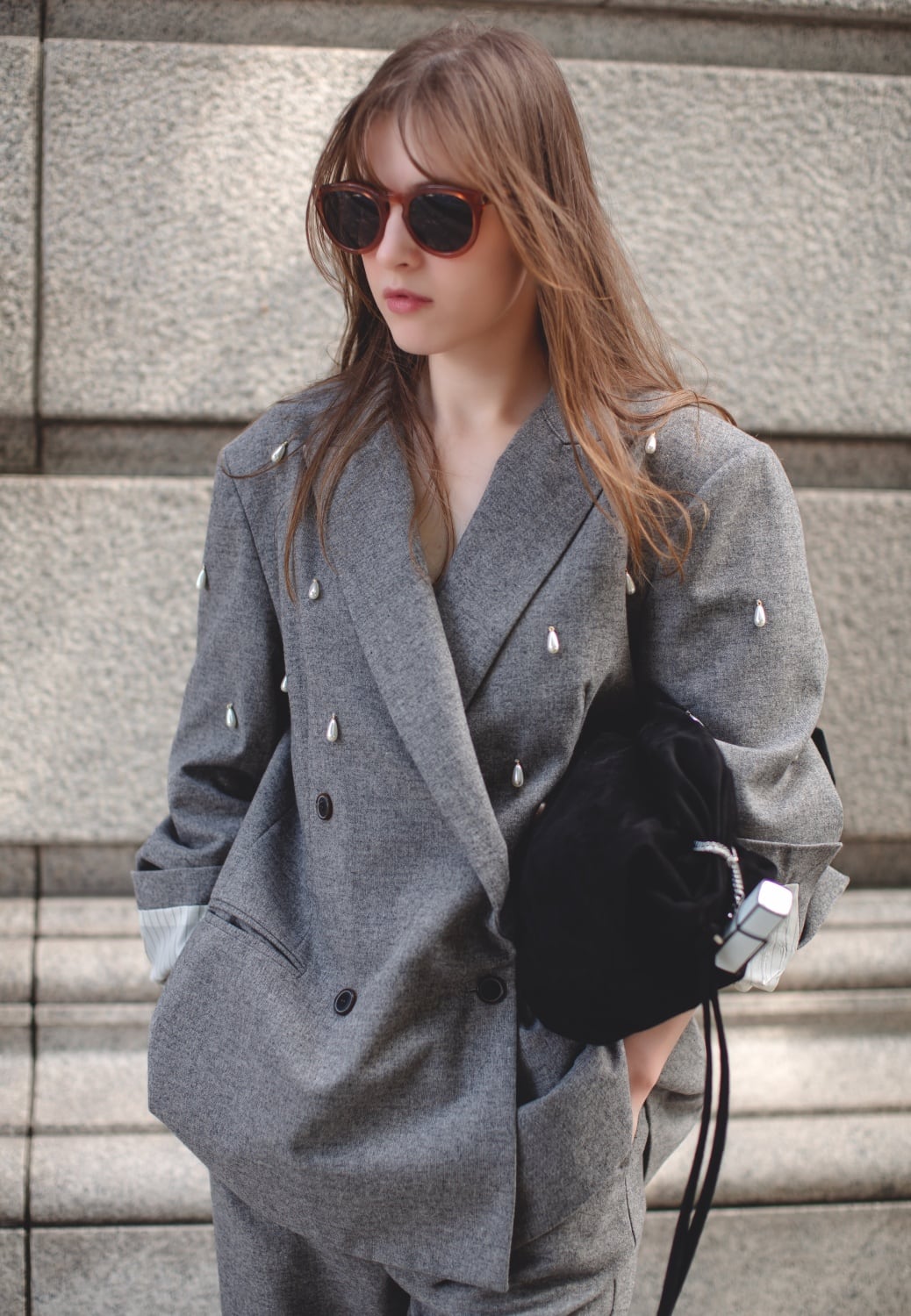 程よい緩めのサイジングは華奢に綺麗にみせてくれるダブルブレステッドジャケットです。