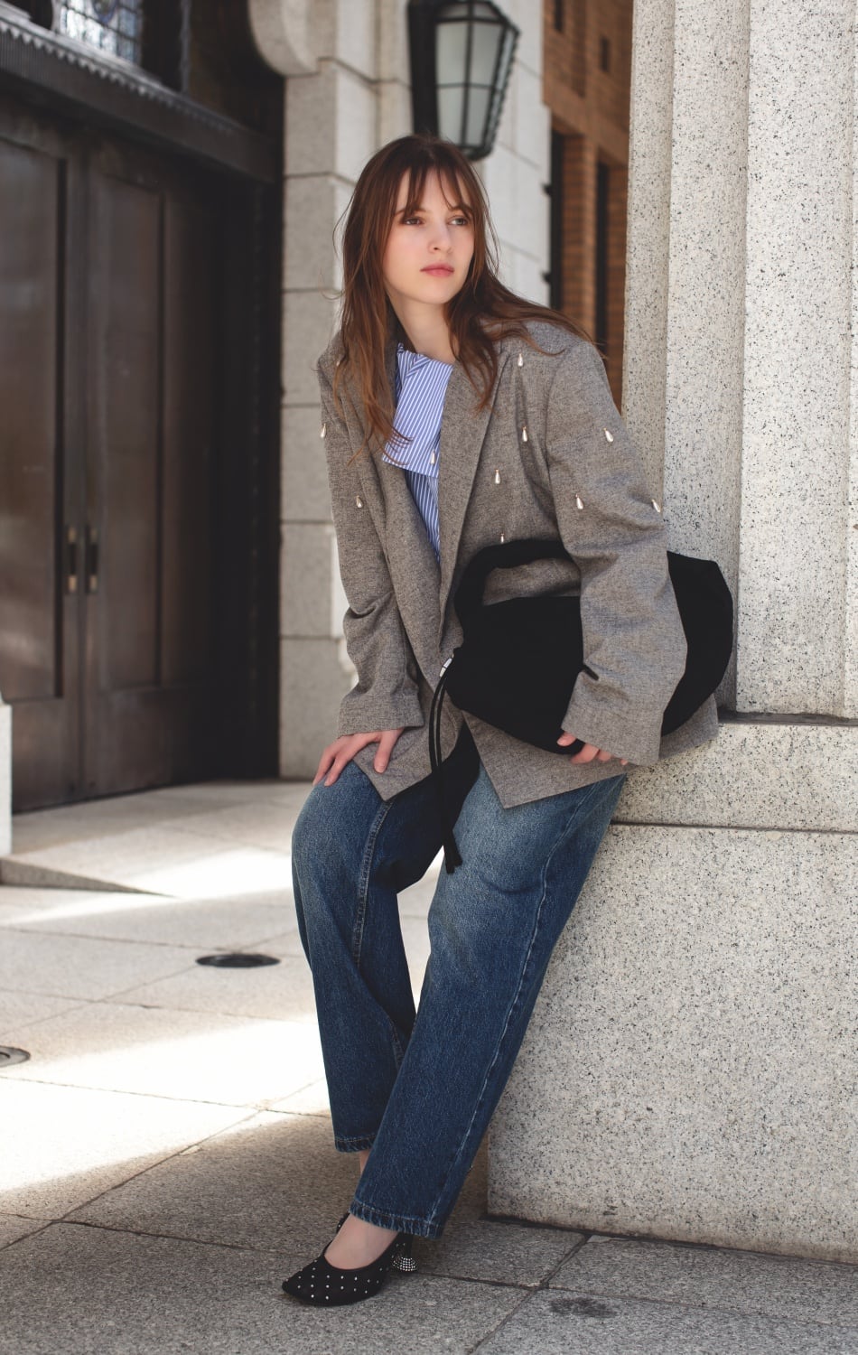 トレンド感のある大きなショルダーとオーバーサイズ感がポイントのメンズライクなデザイン。
