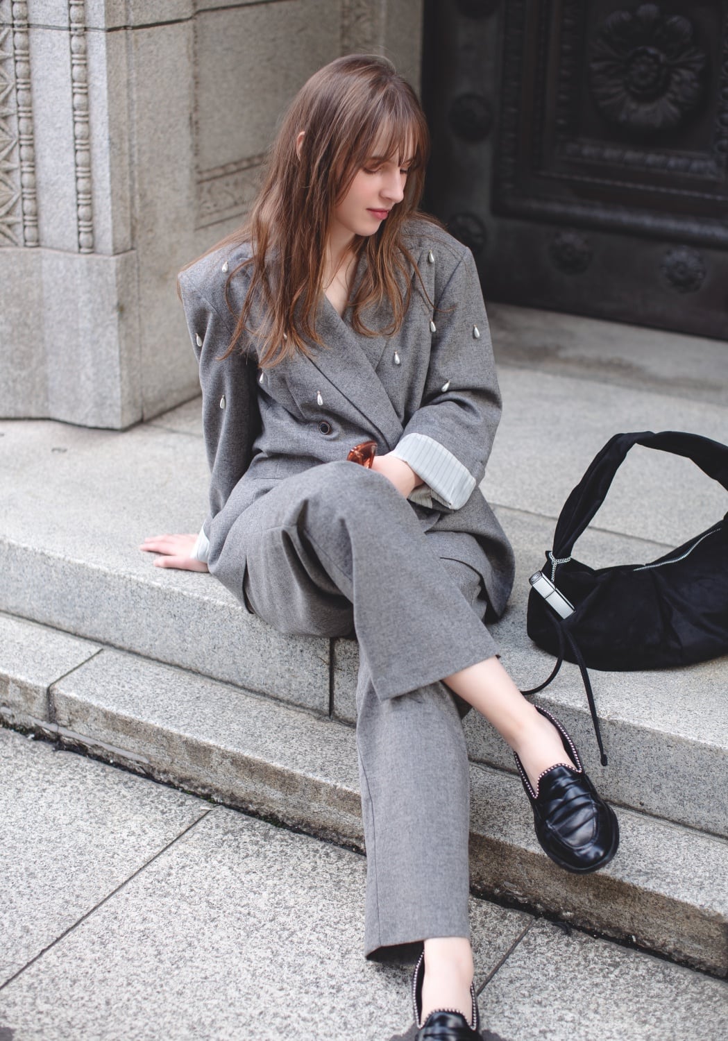 堅くなりすぎず程よくラフな雰囲気で楽しめる、カジュアルな表情を持ったウール生地感なのでデイリー使いにもピッタリ。