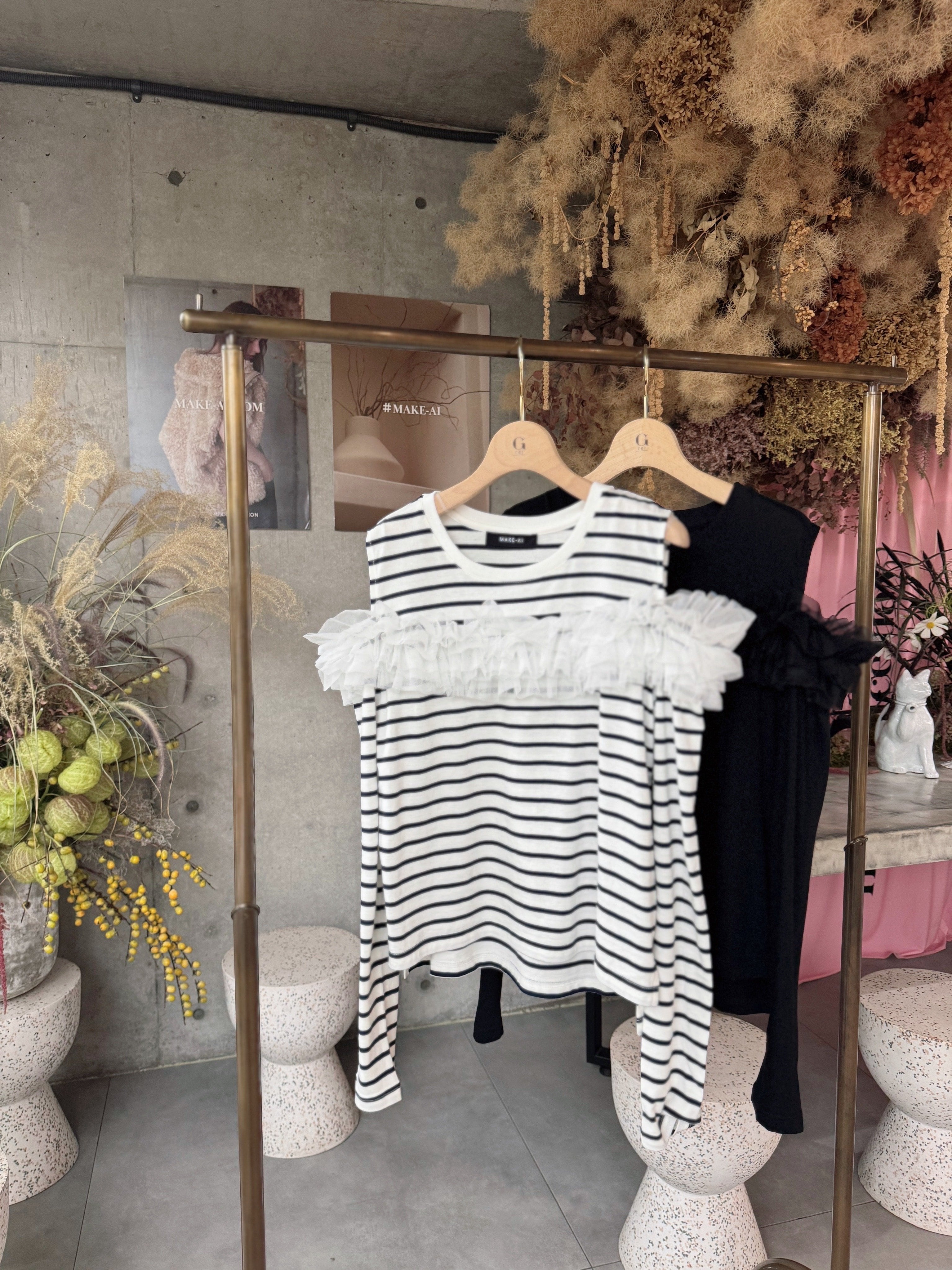 ボリュームたっぷりあるチュールを施したデザインカットソー。