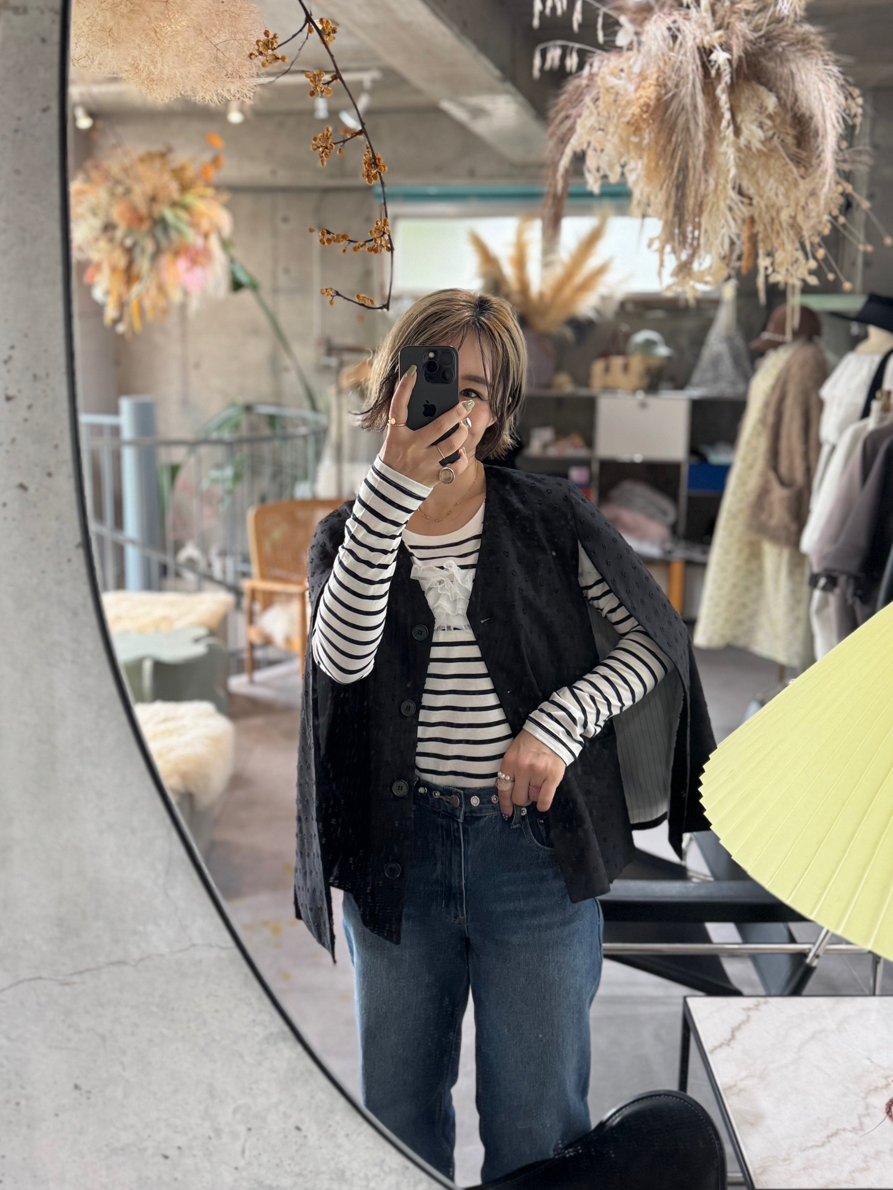 カジュアルなデニムなとのスタイリングがおすすめ。