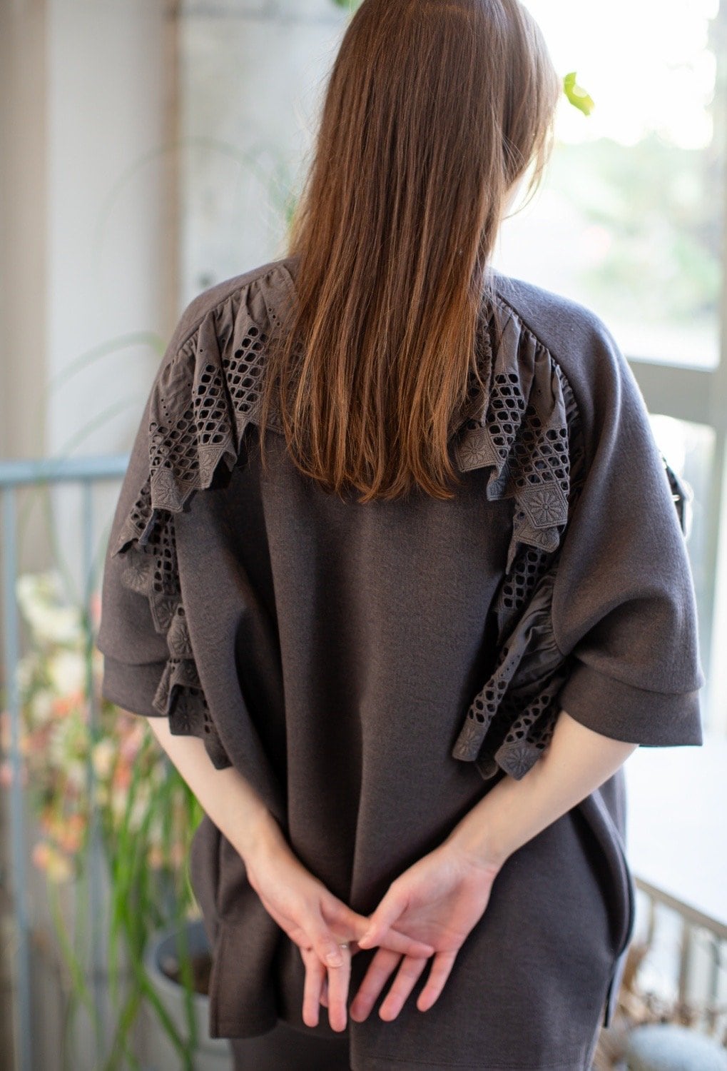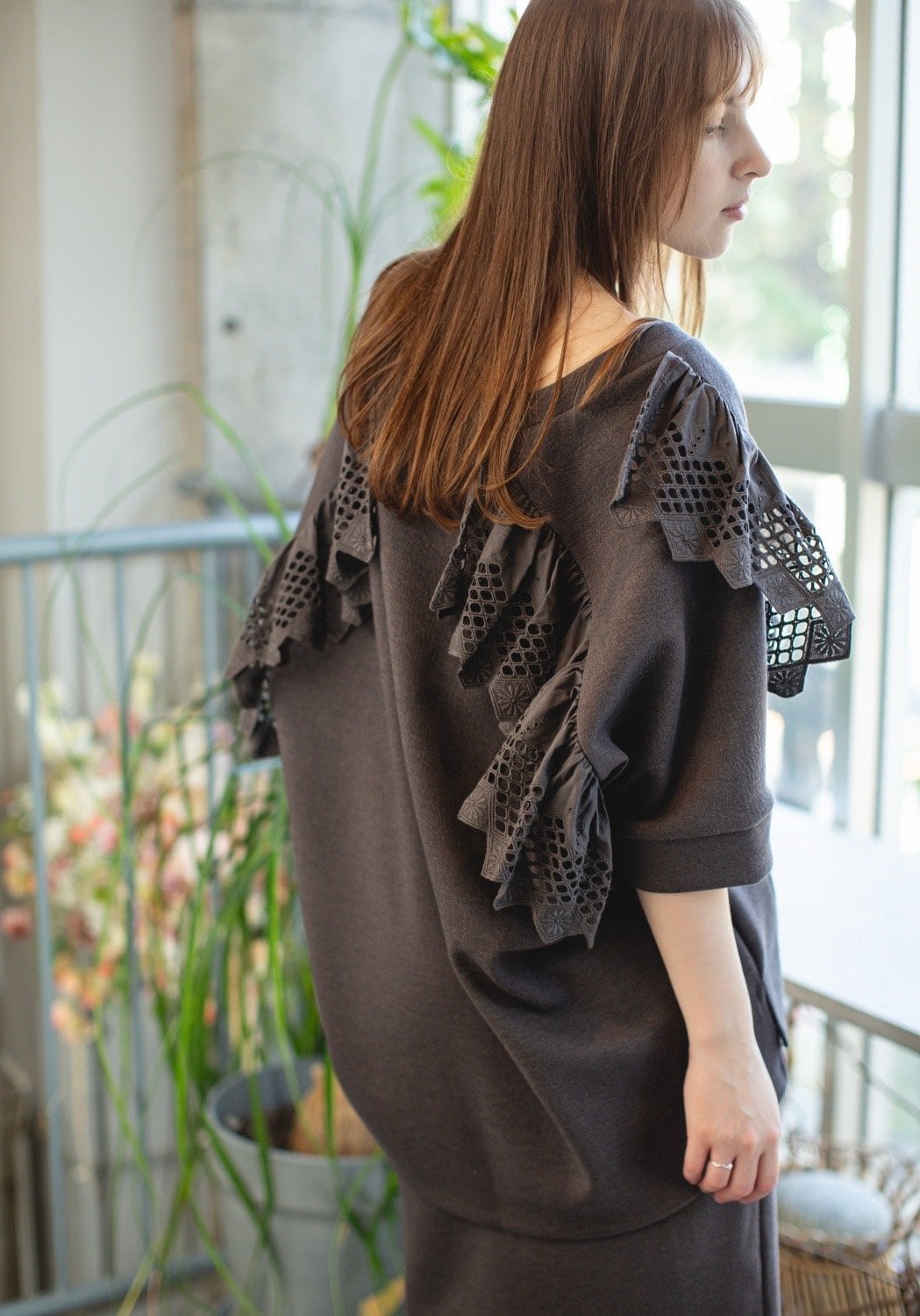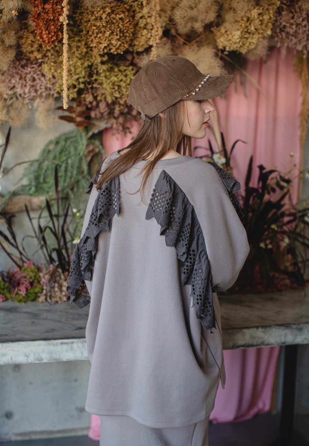 軽くて暖かいボンディング生地で作りました♡ 大人の女性でも着れるあえてスクエアデザインの別注レース。