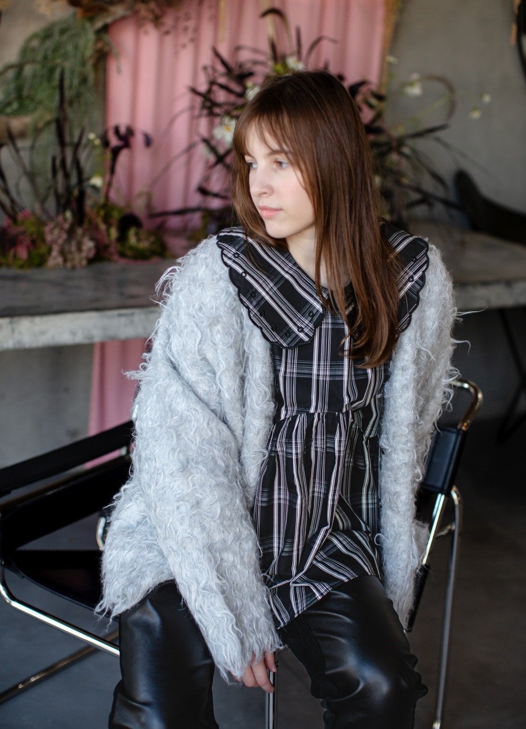 チェックのジャカード生地。