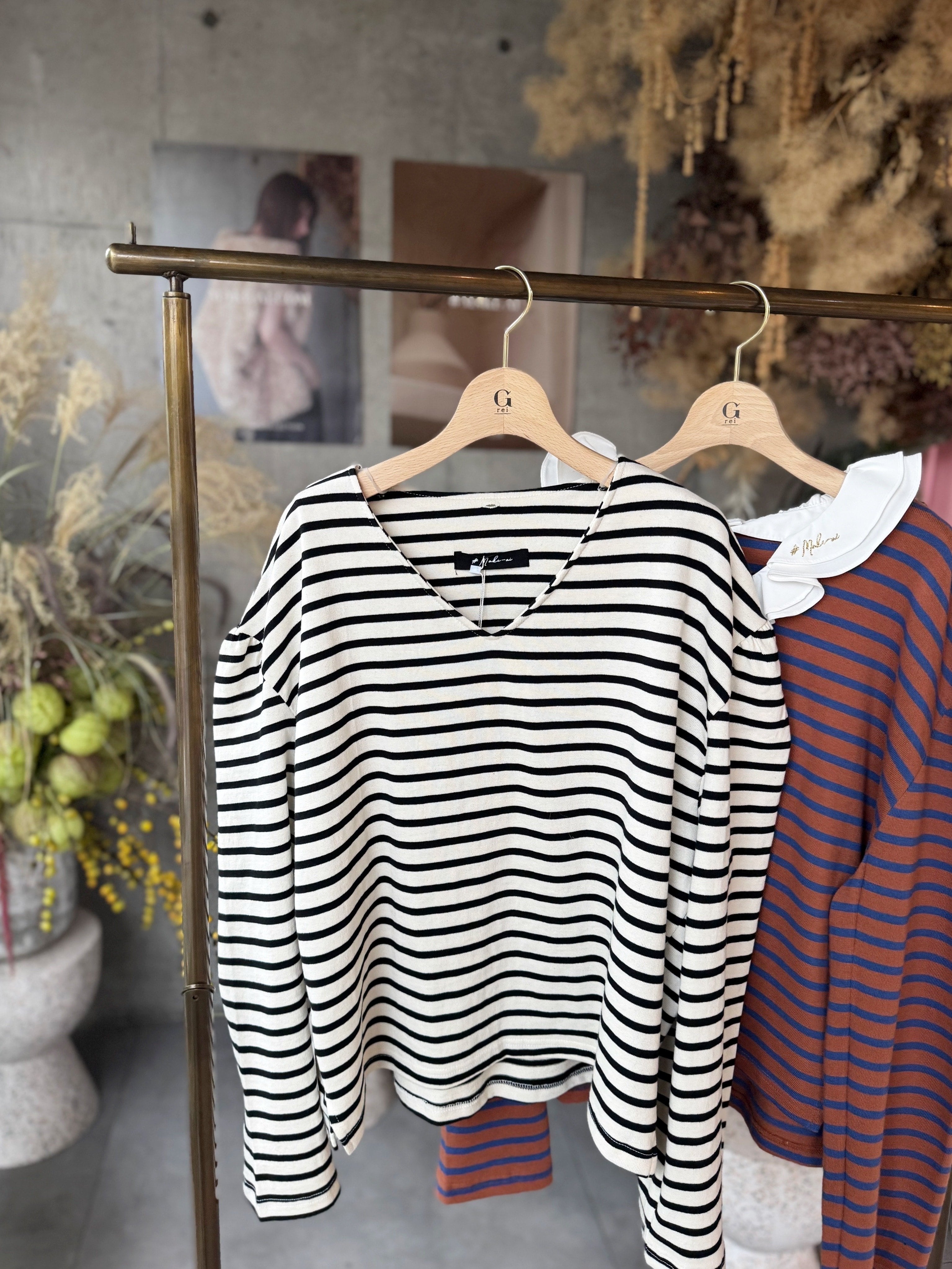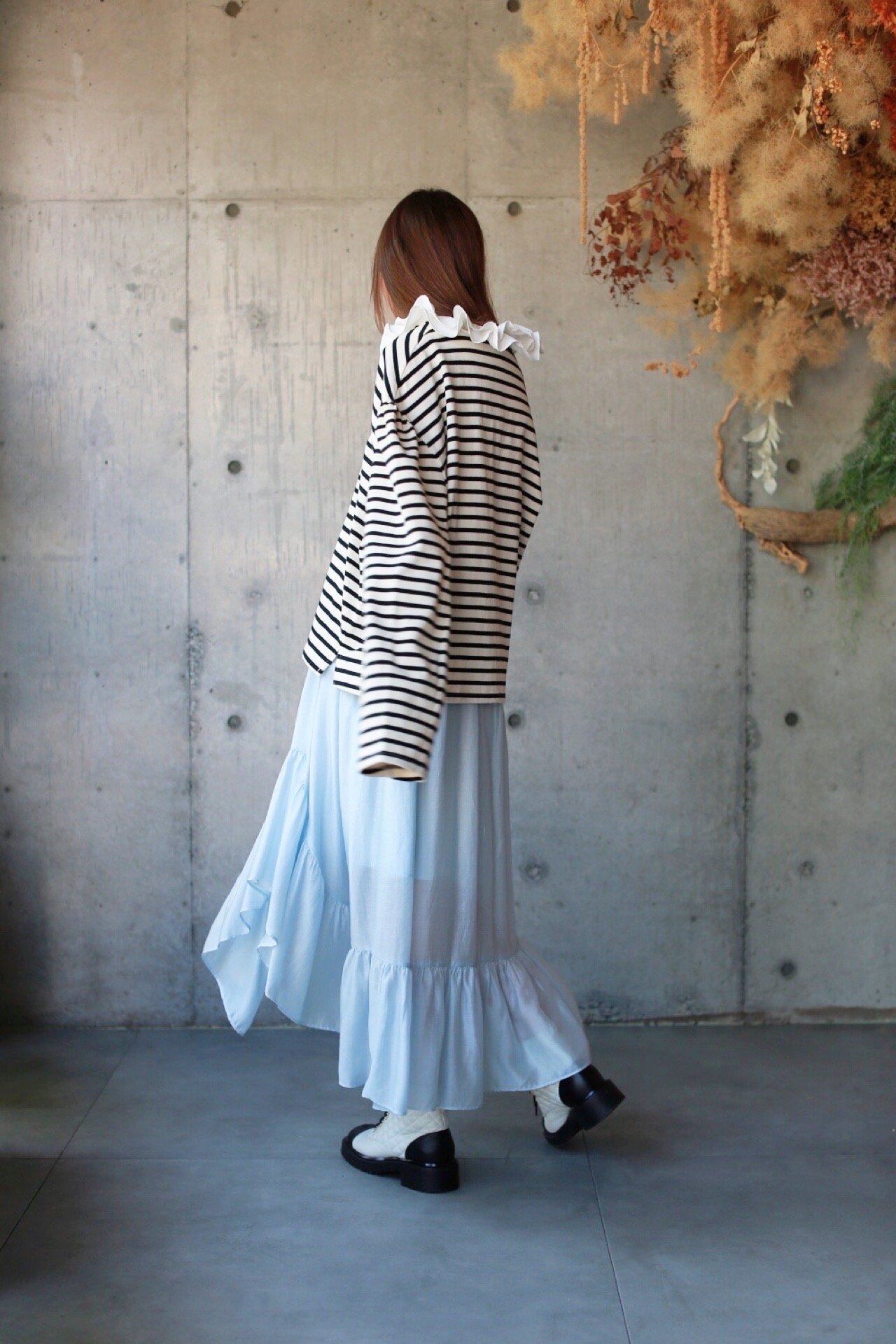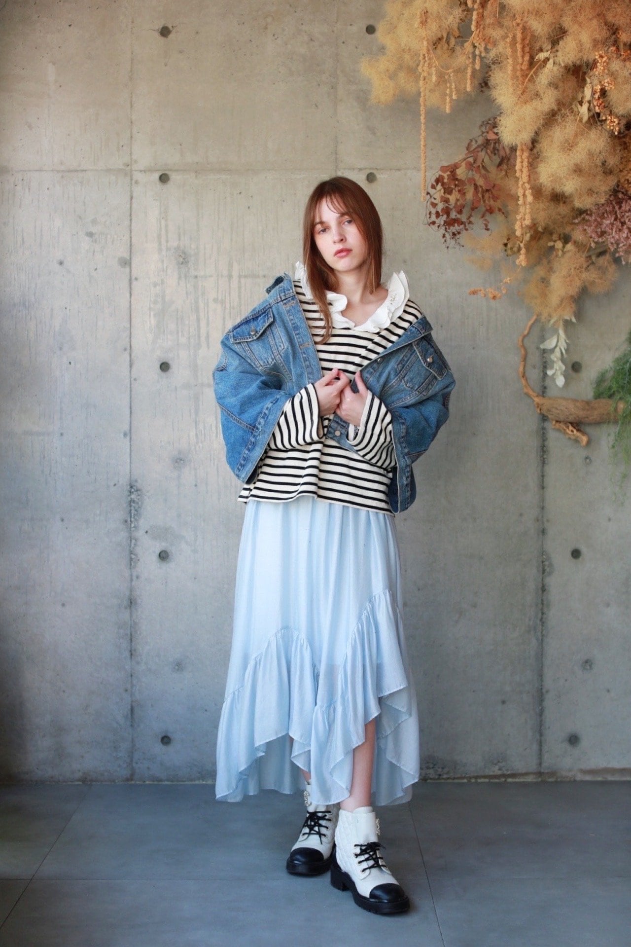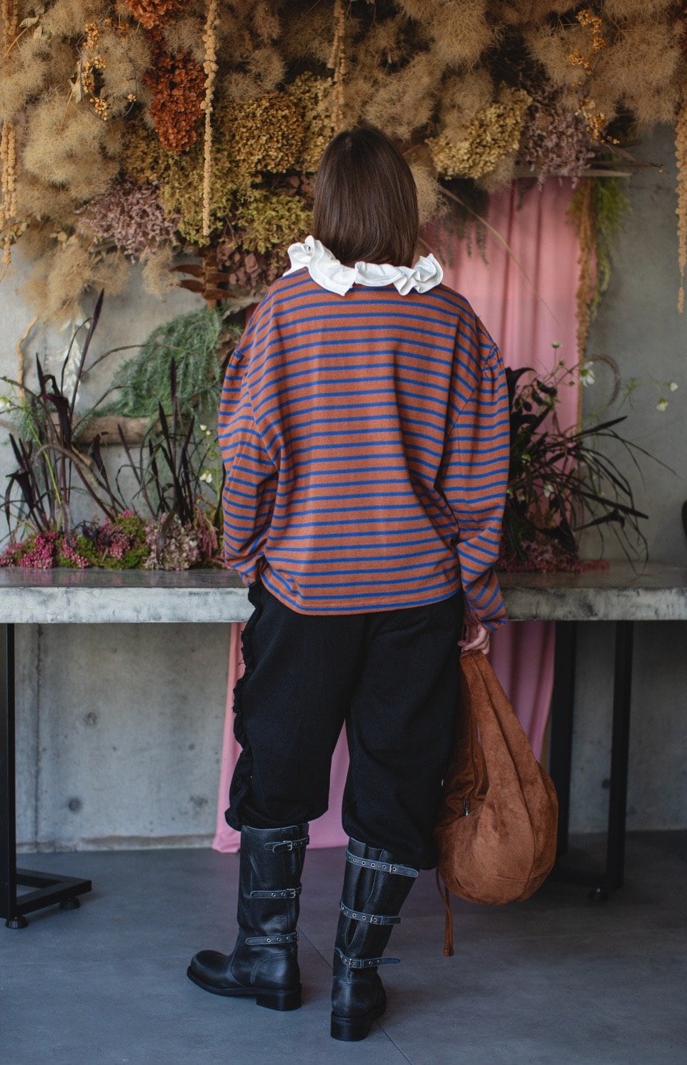 ゆったりとしたオーバーサイズシルエットでこなれ感たっぷりに仕上げたボーダー柄。