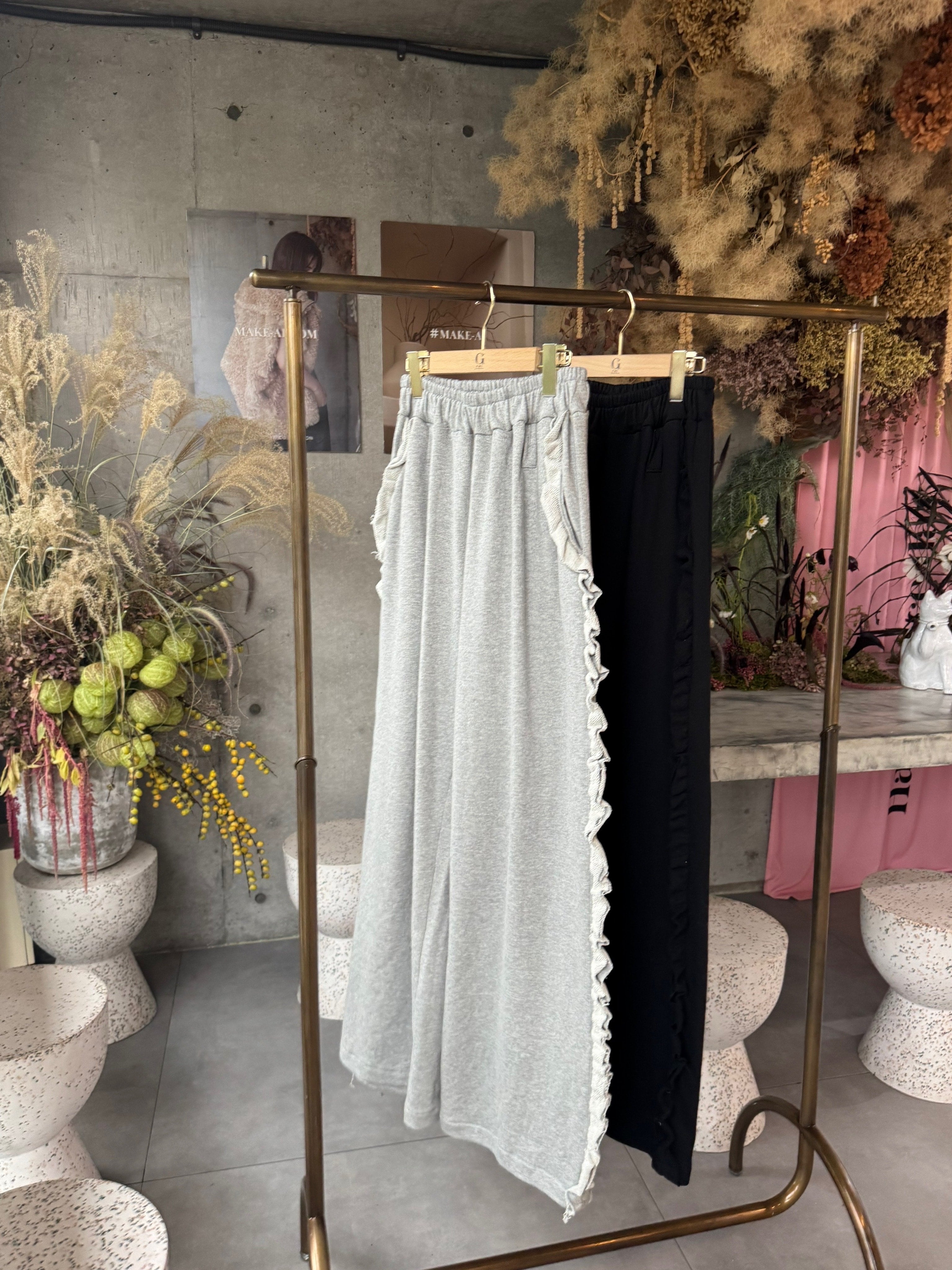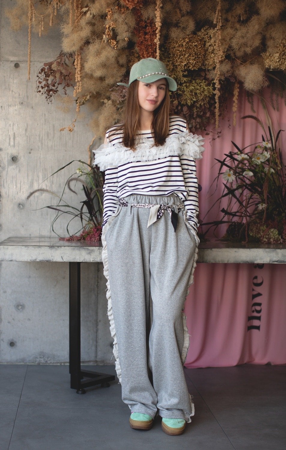 しっかりしたコットン素材のスウェットワイドパンツ。