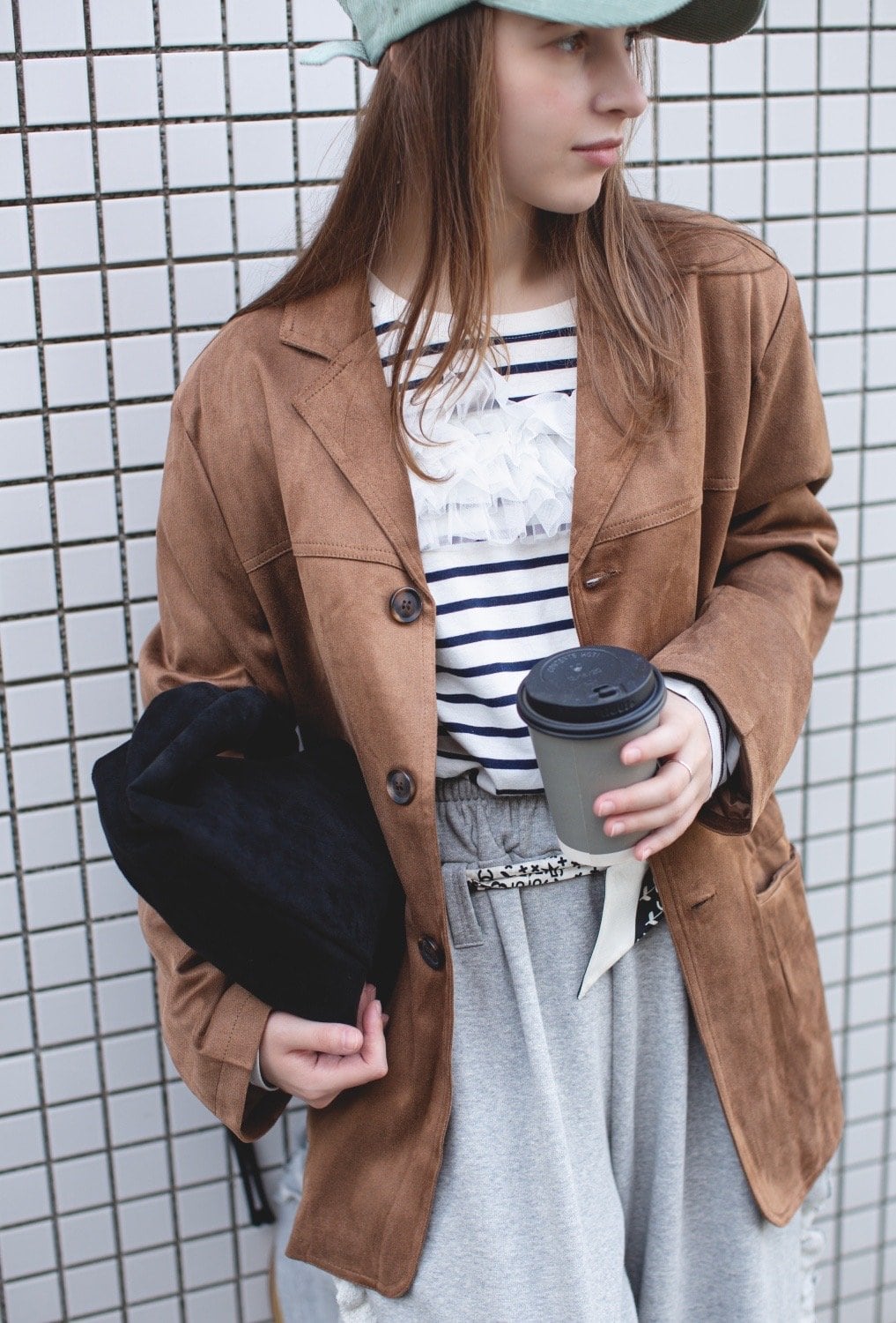 きれいめのジャケット合わせはもちろんシンプルなスウェットトップスとあわせてもおしゃれに間違いない。