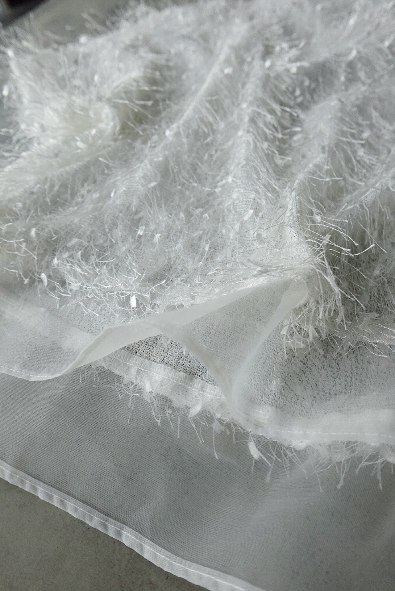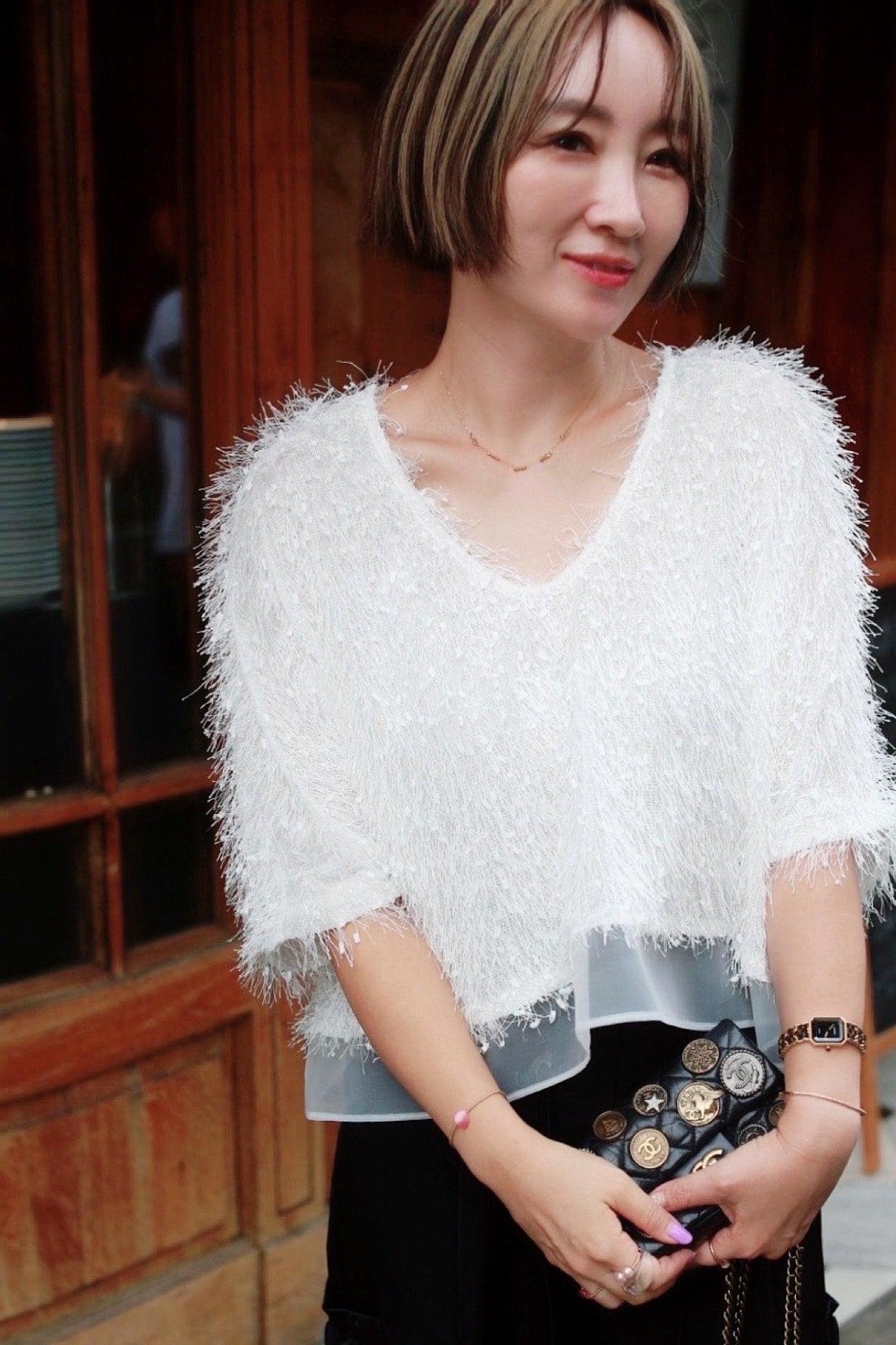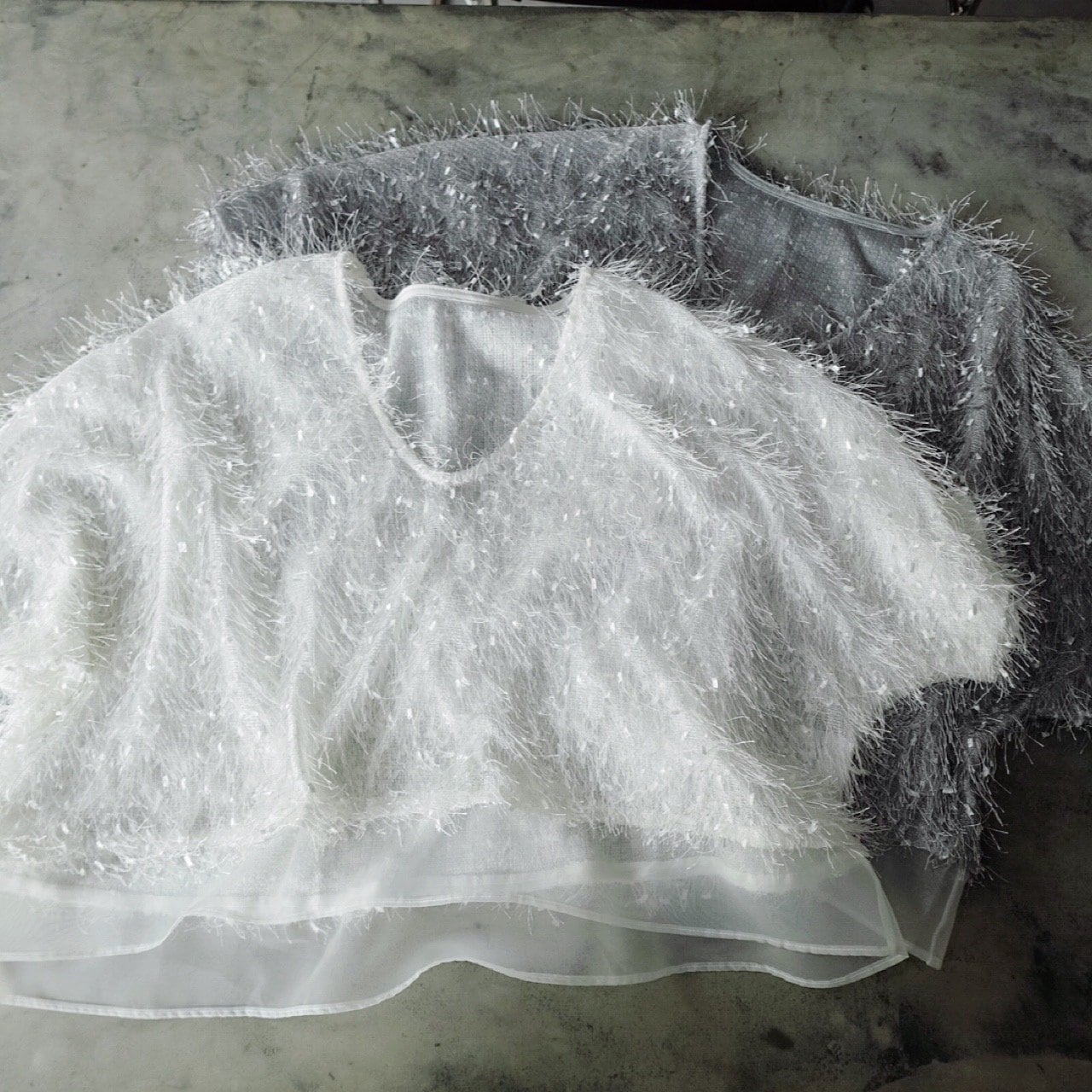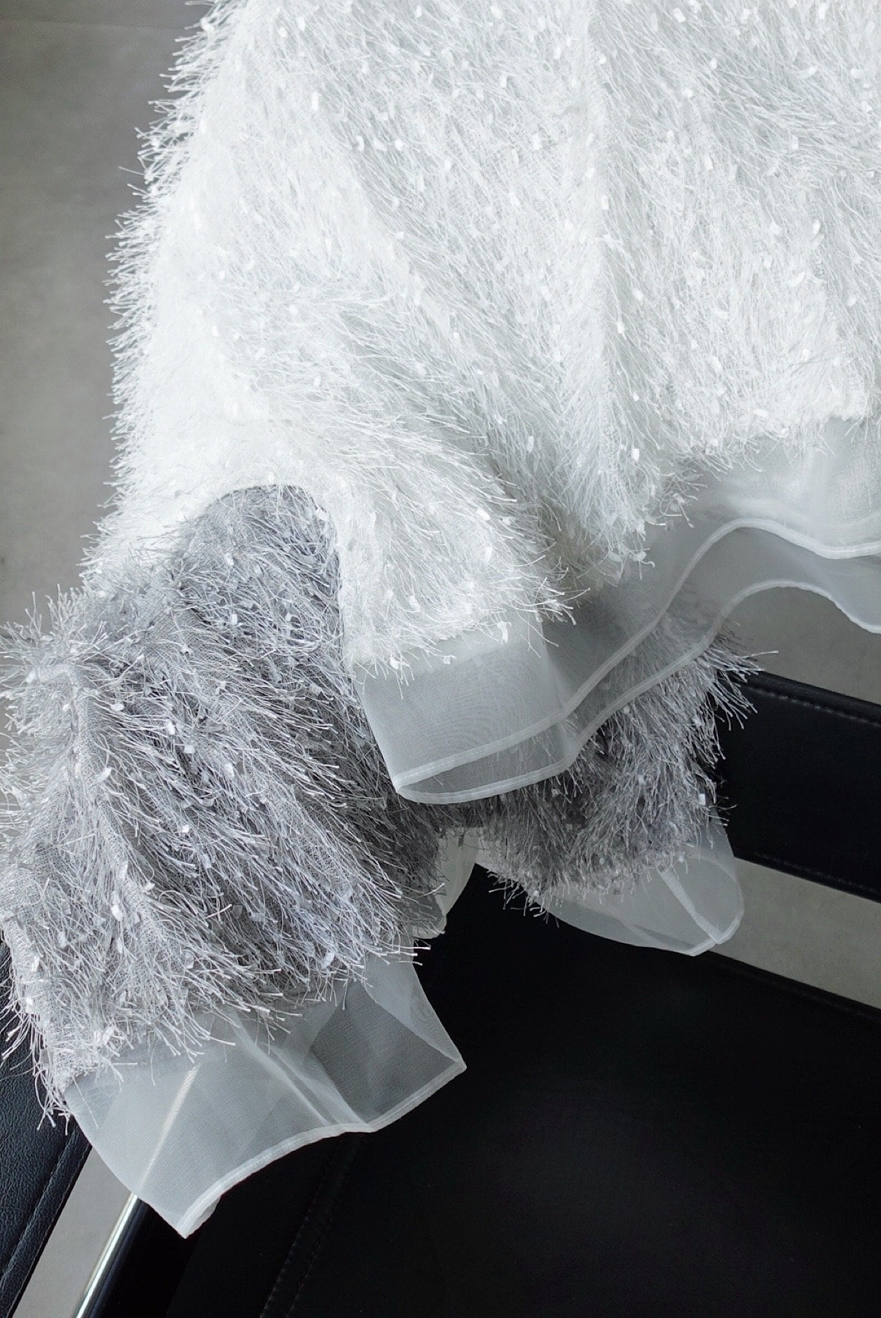 フリンジのついた立体感のあるエアリーな風合いが華やかなアクセントをプラスするトップス。