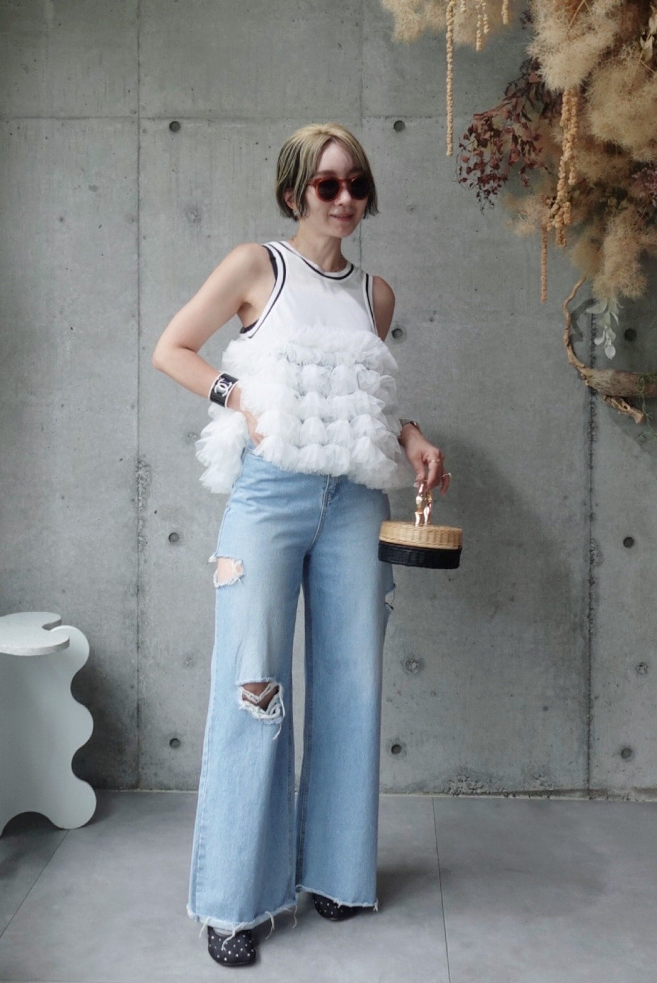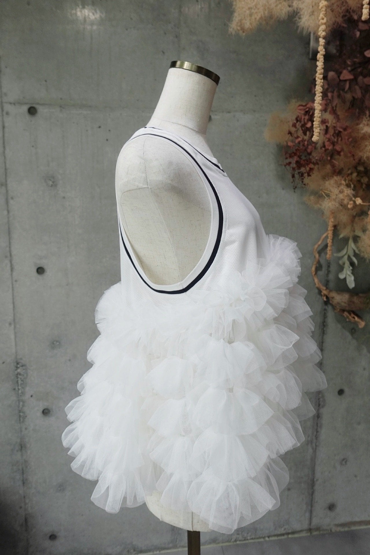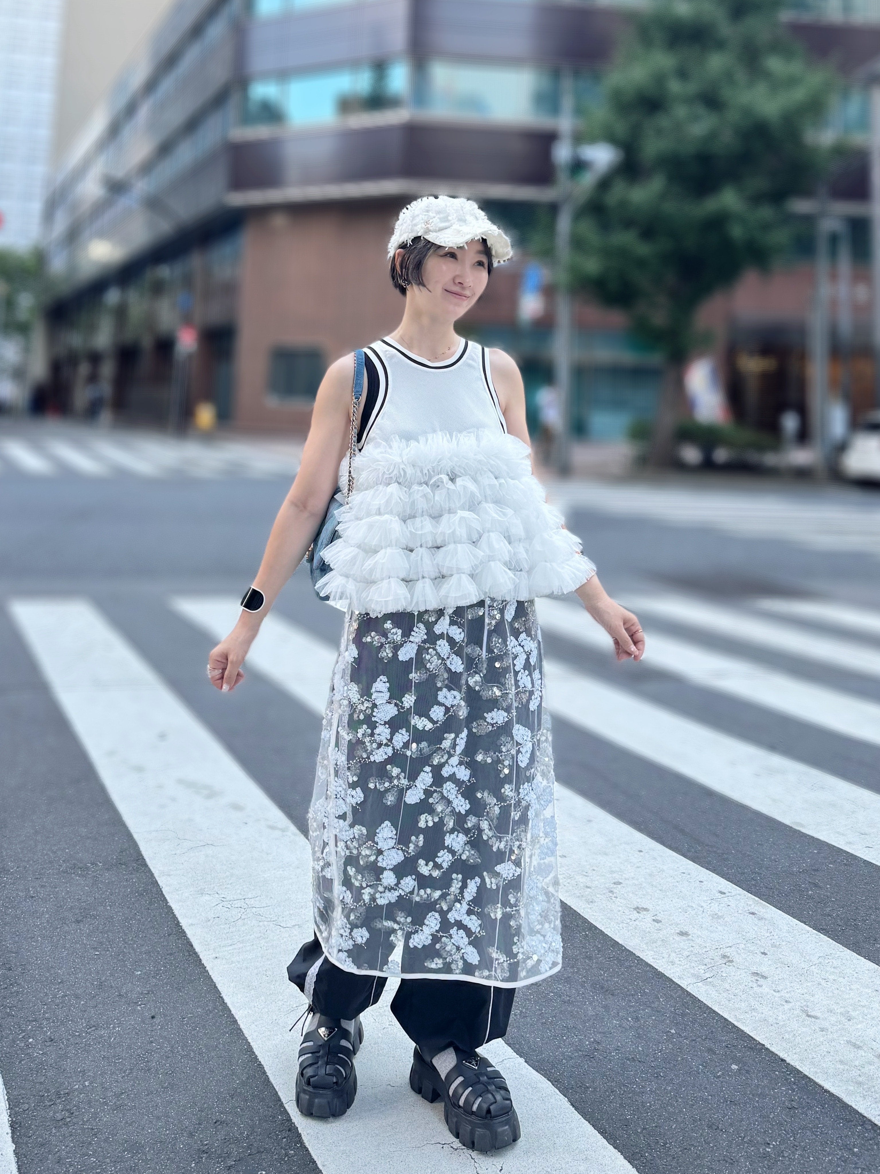 立体感のあるふんわりしたチュールが、カジュアルな中、華やかさを演出してくれます。