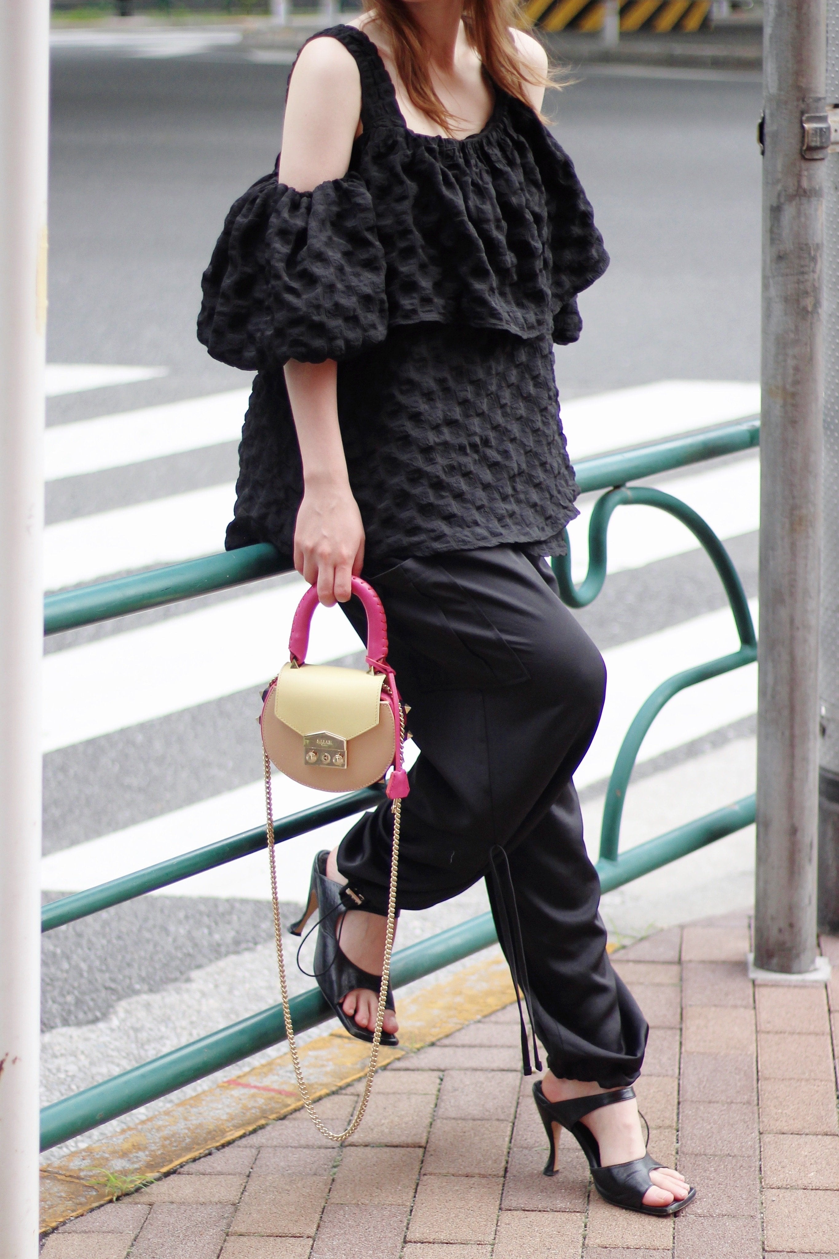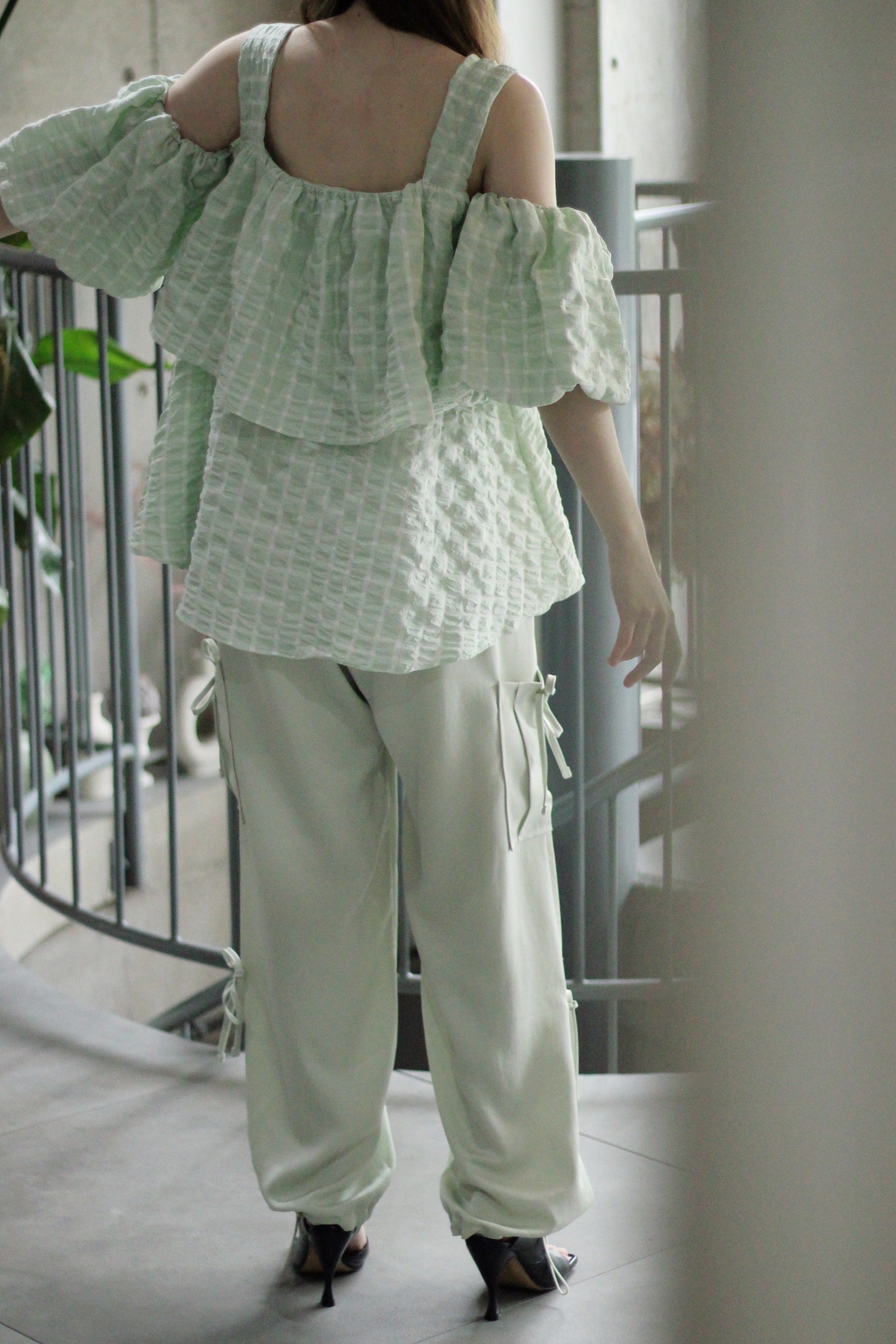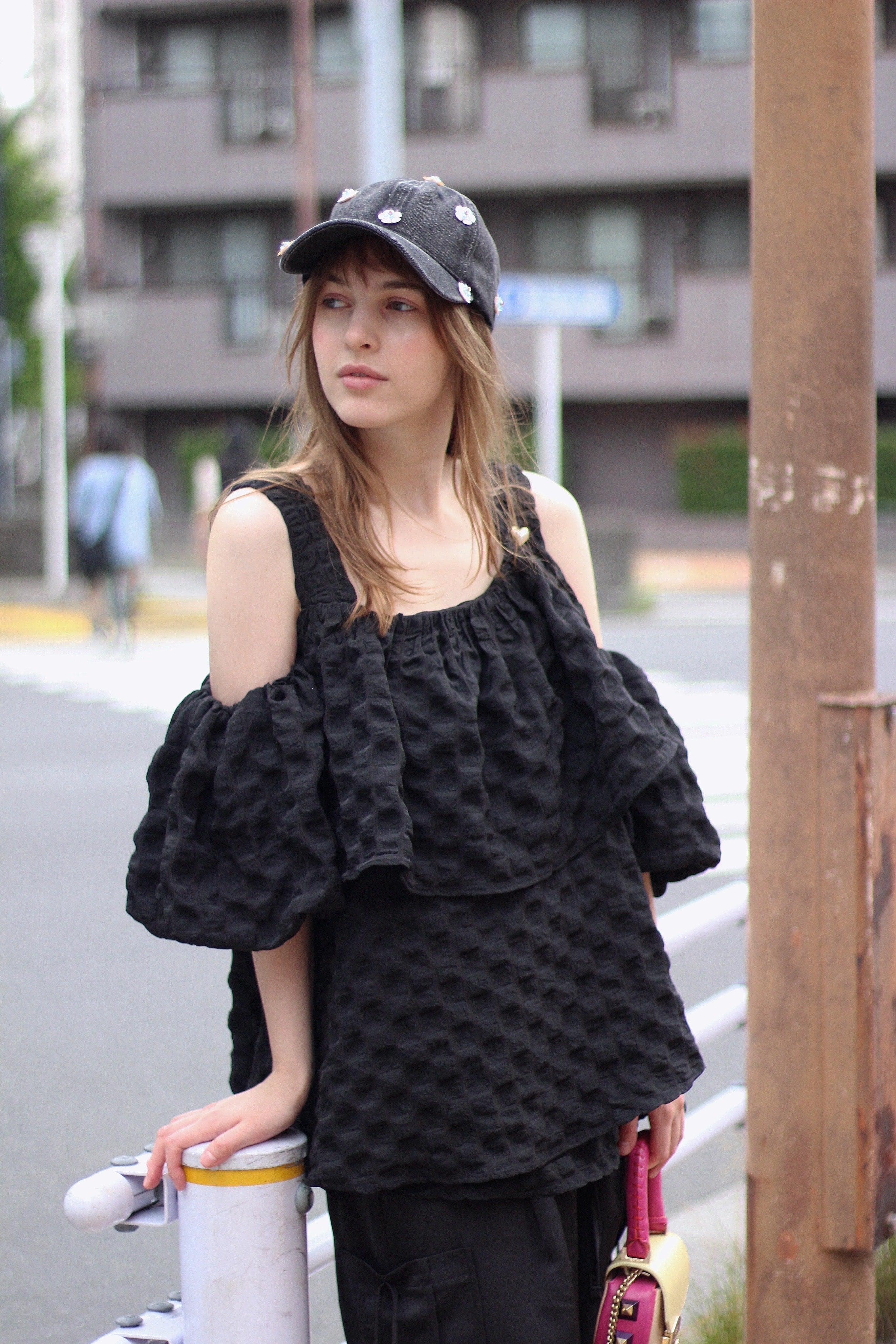 ぷくっと立体的な生地が可愛いオフショルダーのトップスです♡