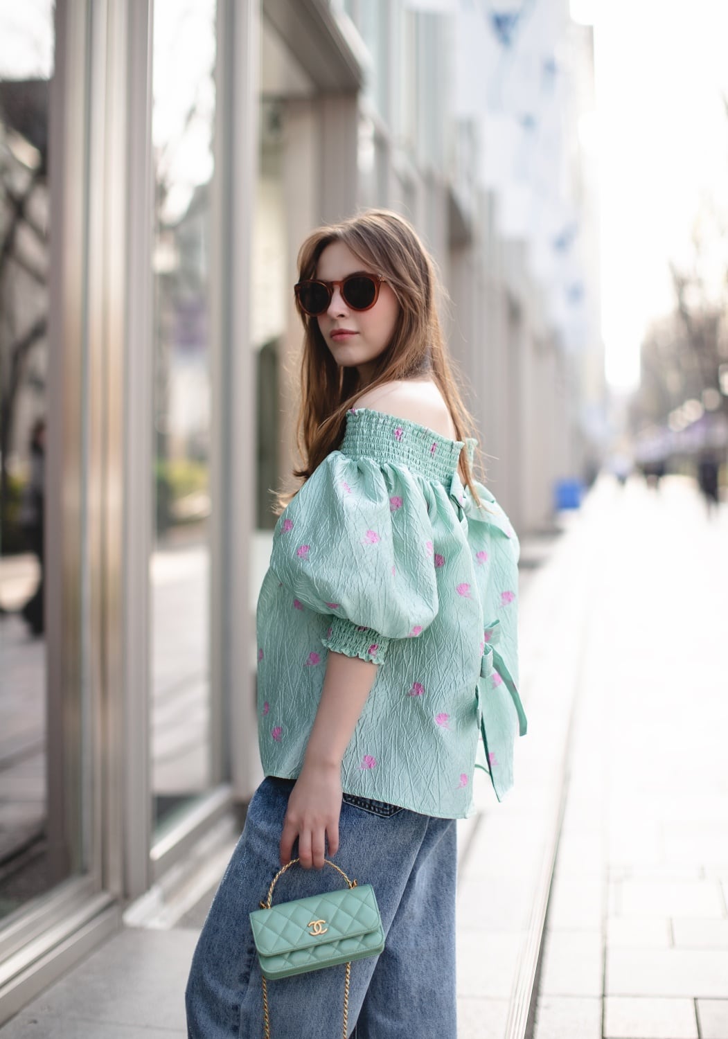 立体的な柄のジャカード生地にスモッグ刺繡が可愛い2wayブラウスです♡