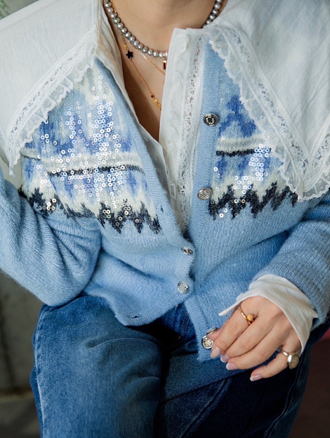 ボタンを全て閉めてトップスにしても可愛いし、開けてカーディガンにしても❤︎