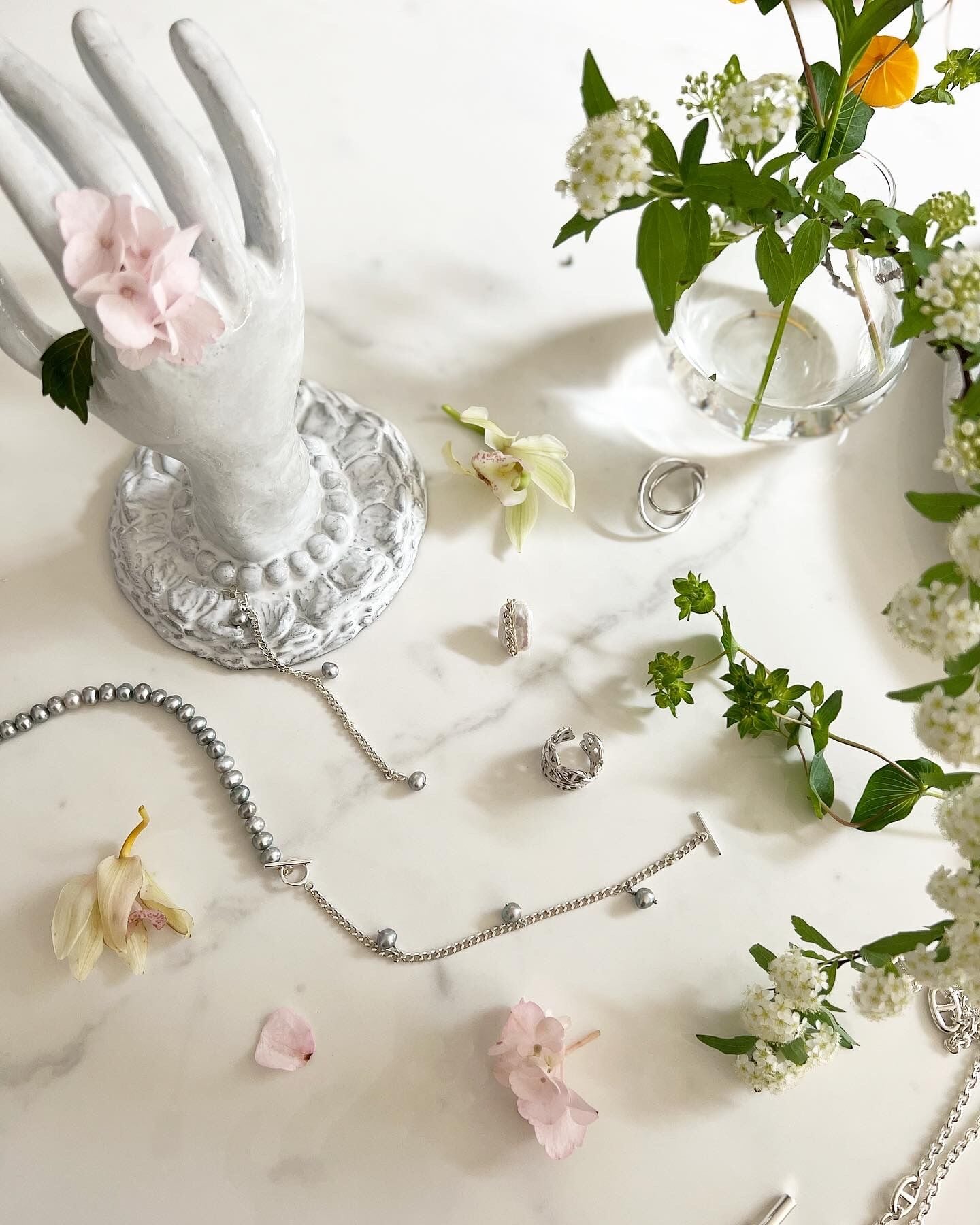 (special collaboration)グレー淡水パール×silver925チェーン4wayネックレス