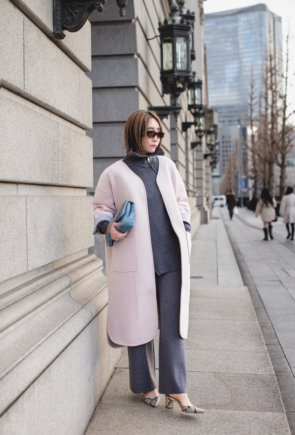 コートのラインを強調したコーデもおすすめ♡