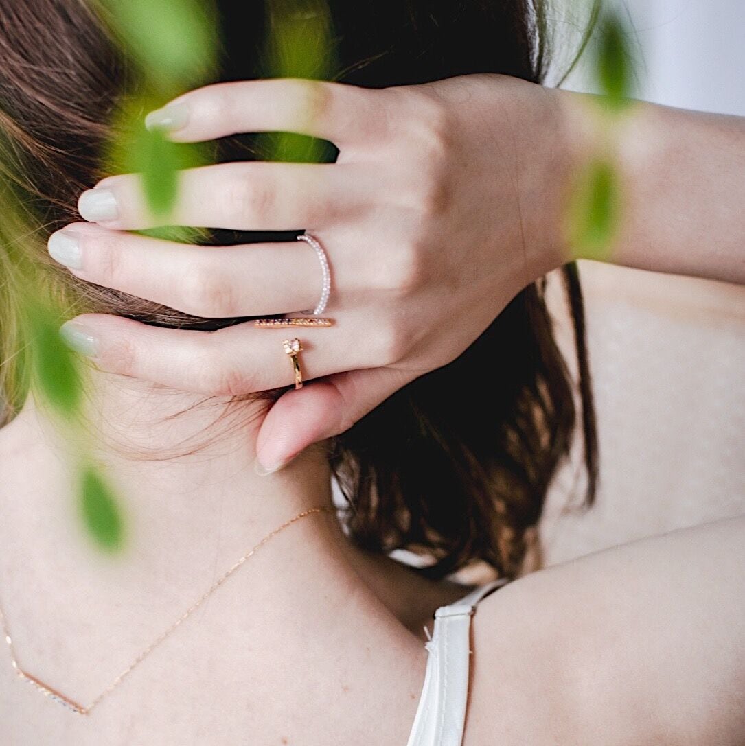 細めの幅、シンプルなデザインで、重ね付けにも最適なアイテムです。
