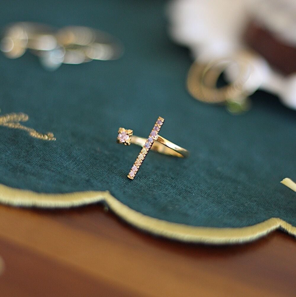 カラーキュービックグラデーションがアクセントになったオープンリング。