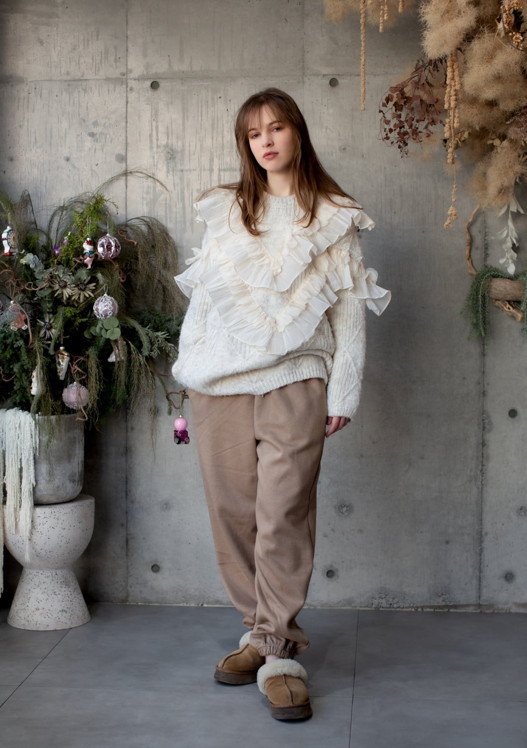 程よいワイド感のあるシルエットで軽くて暖かい裏起毛生地を使用した冬に欠かせないパンツ。
