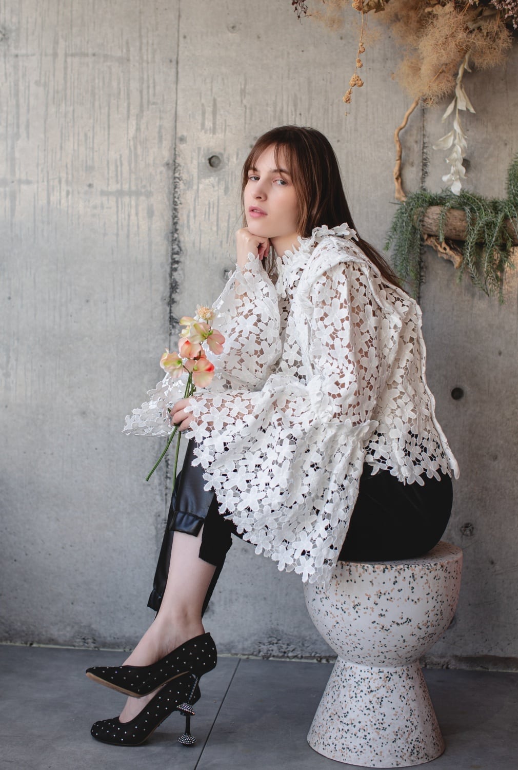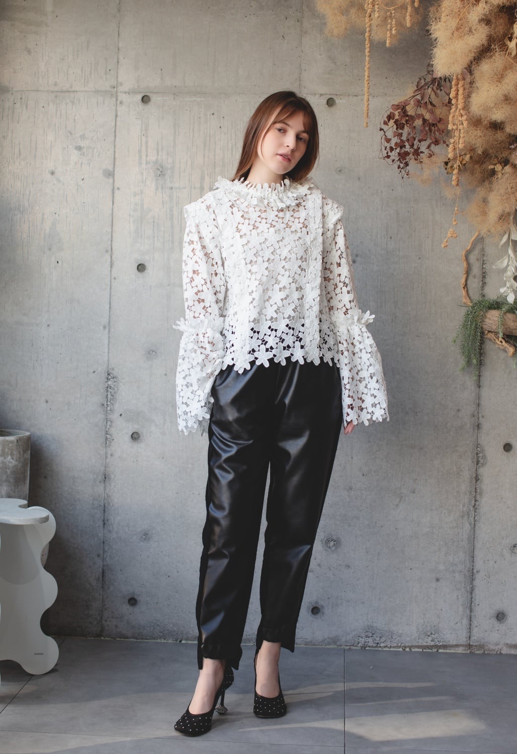 魅力的なフラワーレースが印象的な「フラワーlaceブラウス」は、
