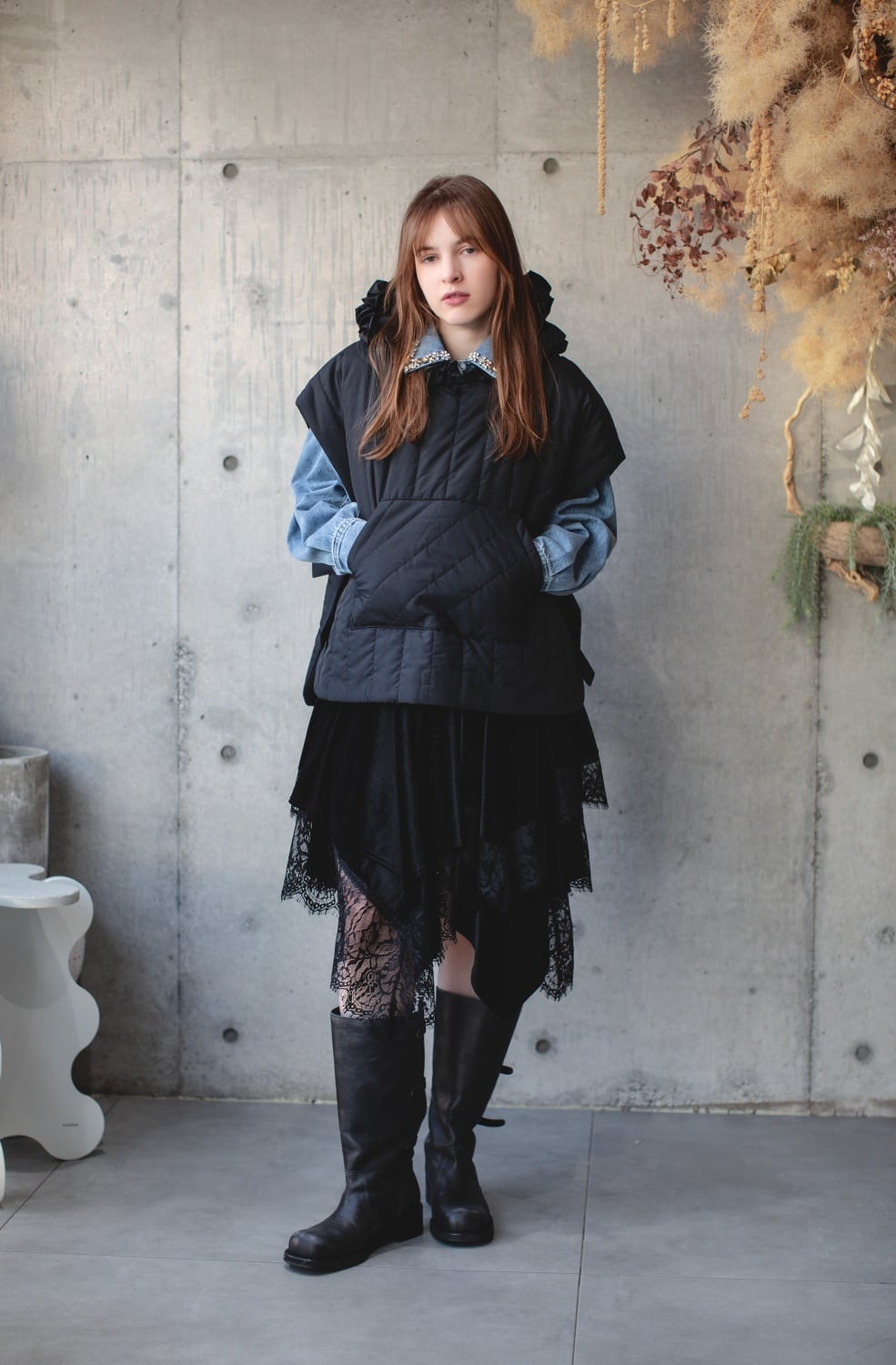 ゆったりとしたサイズ感なので、さまざまなインナーとの重ね着にも対応。