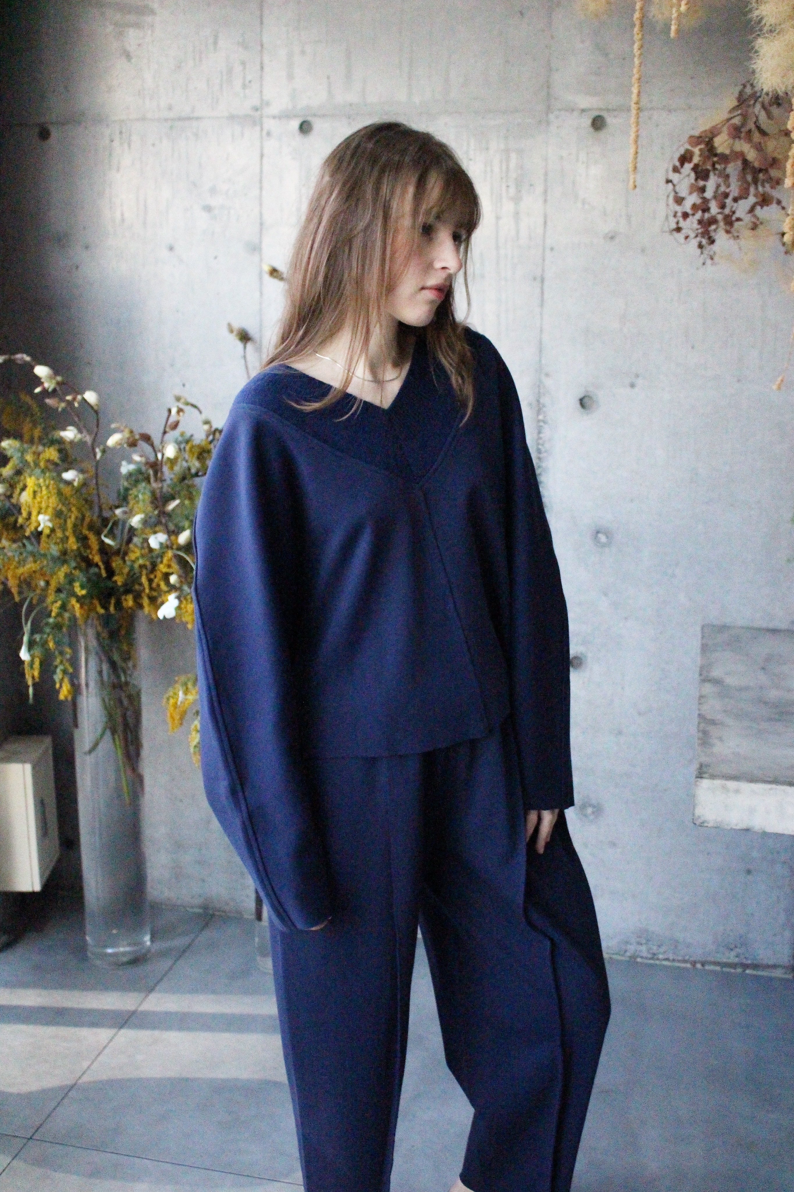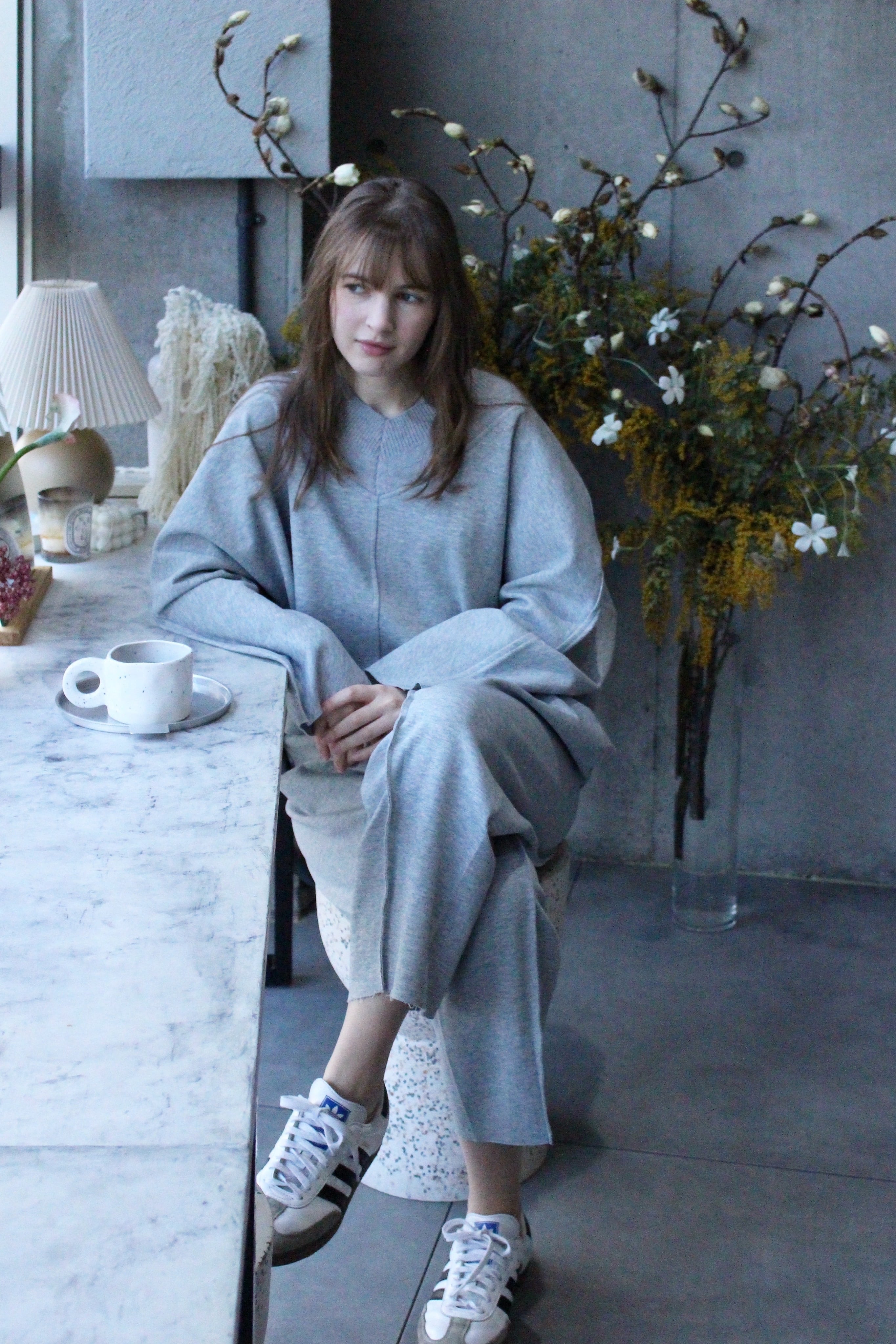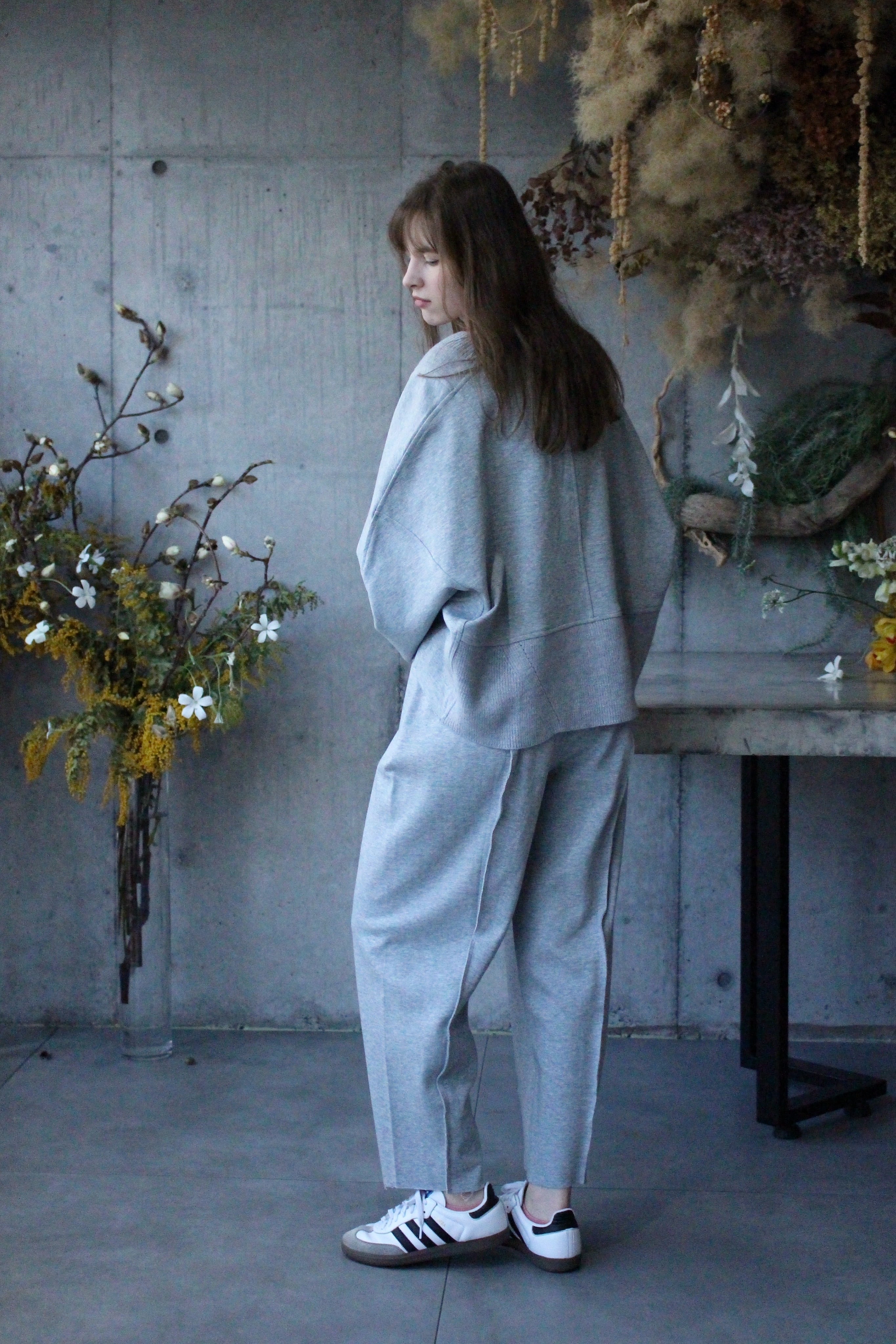 楽ちんなスウェットなのに着るときちんと感あるスタイルに。