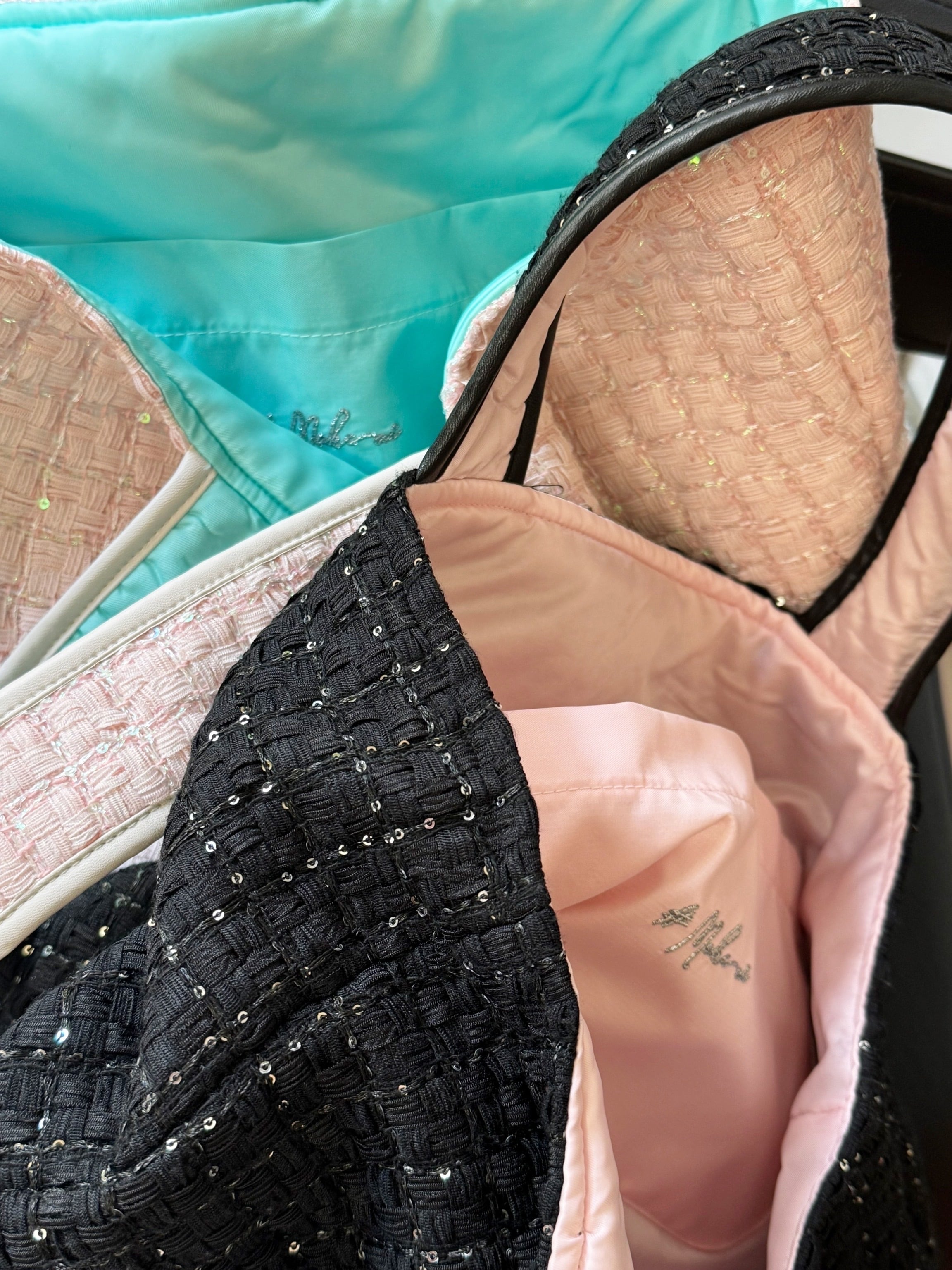 裏地は爽やかなミントグリーンカラー・ピンクカラーが手に持った時も見えて