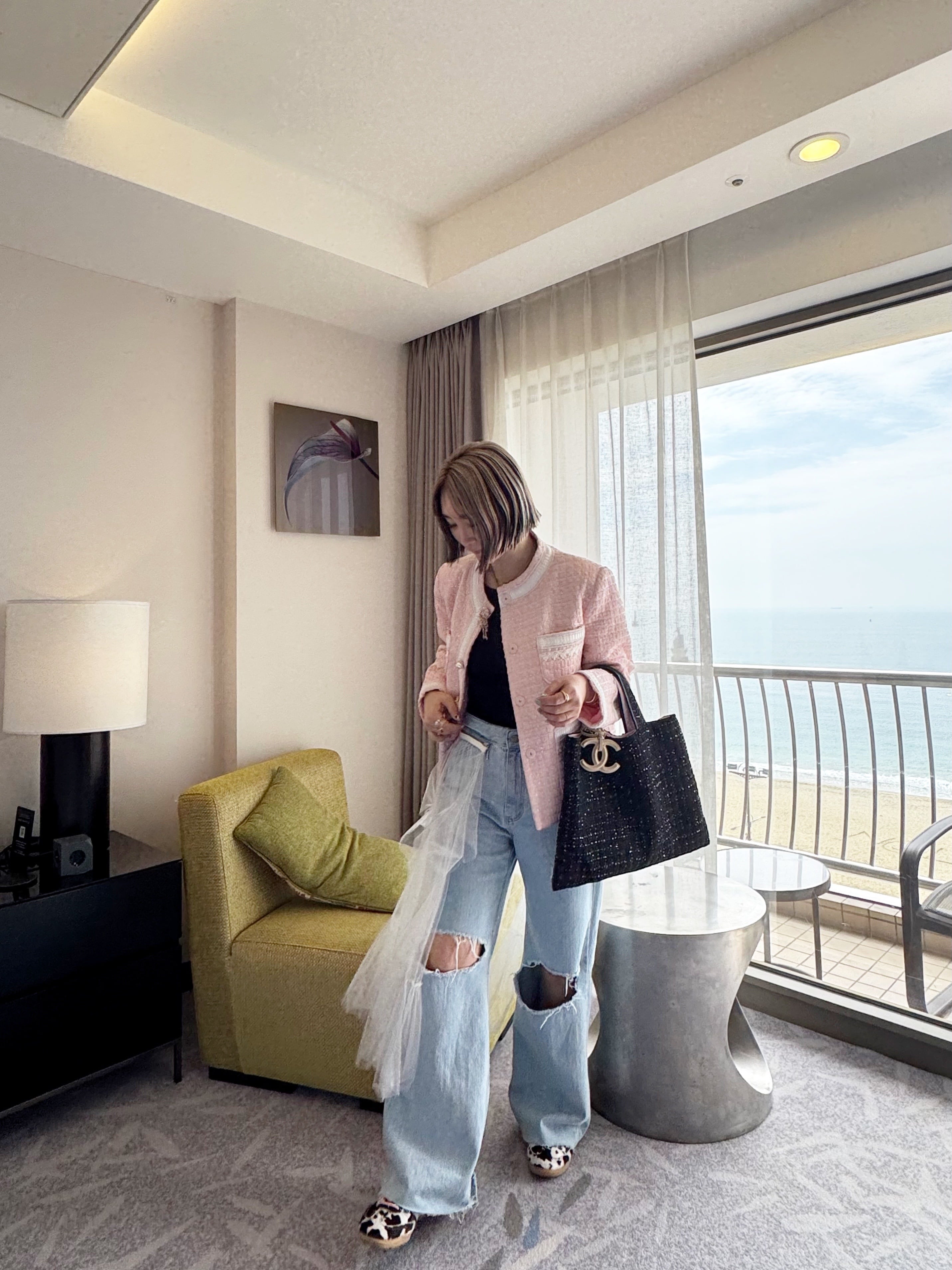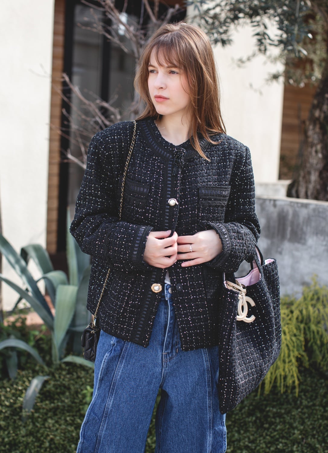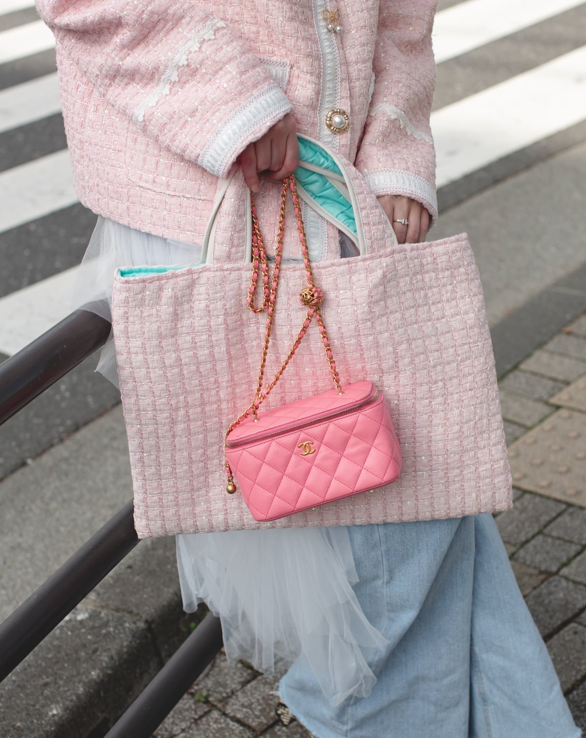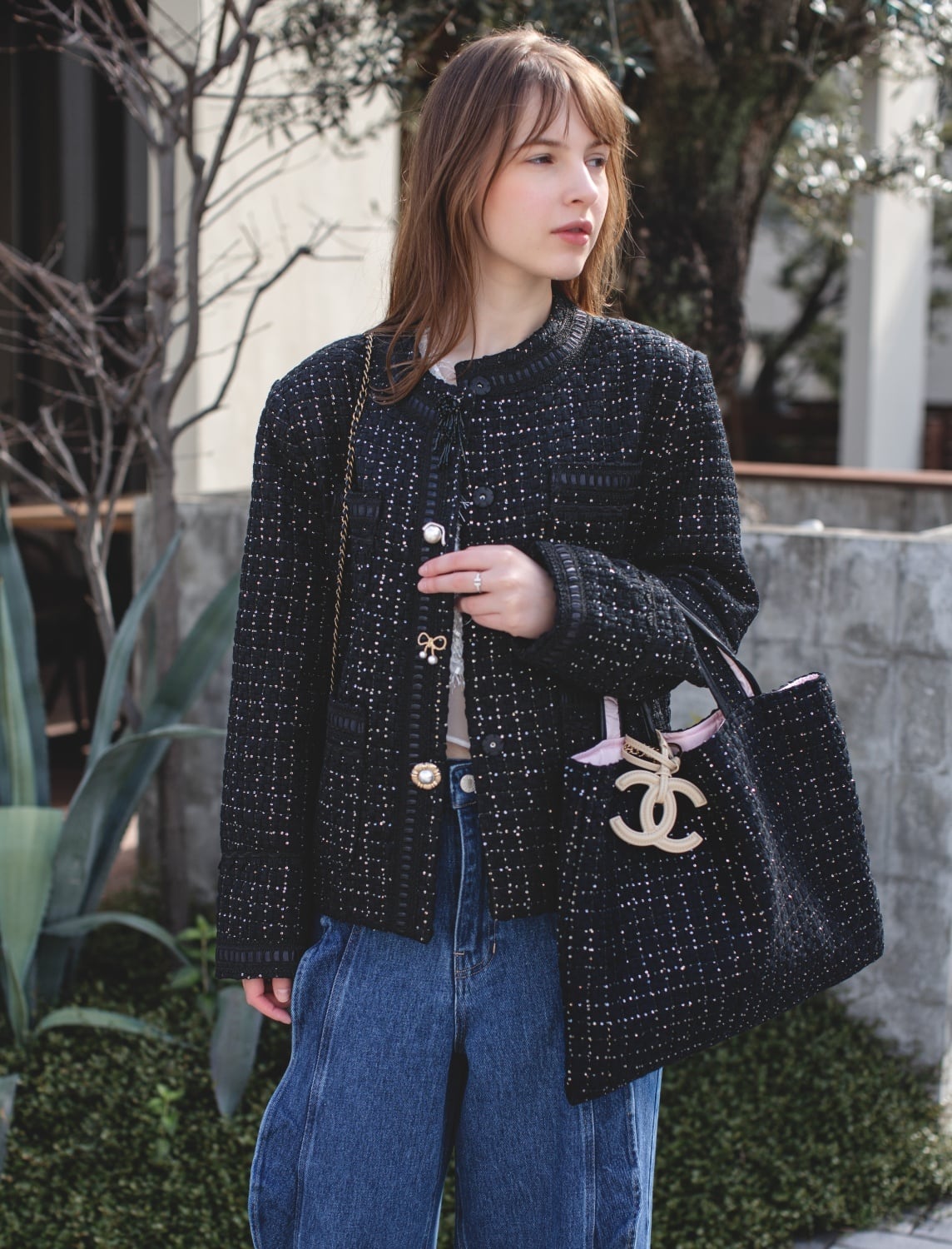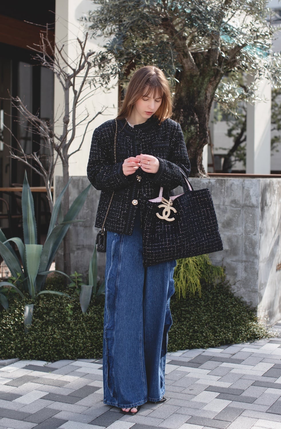 上品かつ可愛らしいツイードバッグはどんなコーデにも合わせやすく、ヘビロテできるアイテムです。